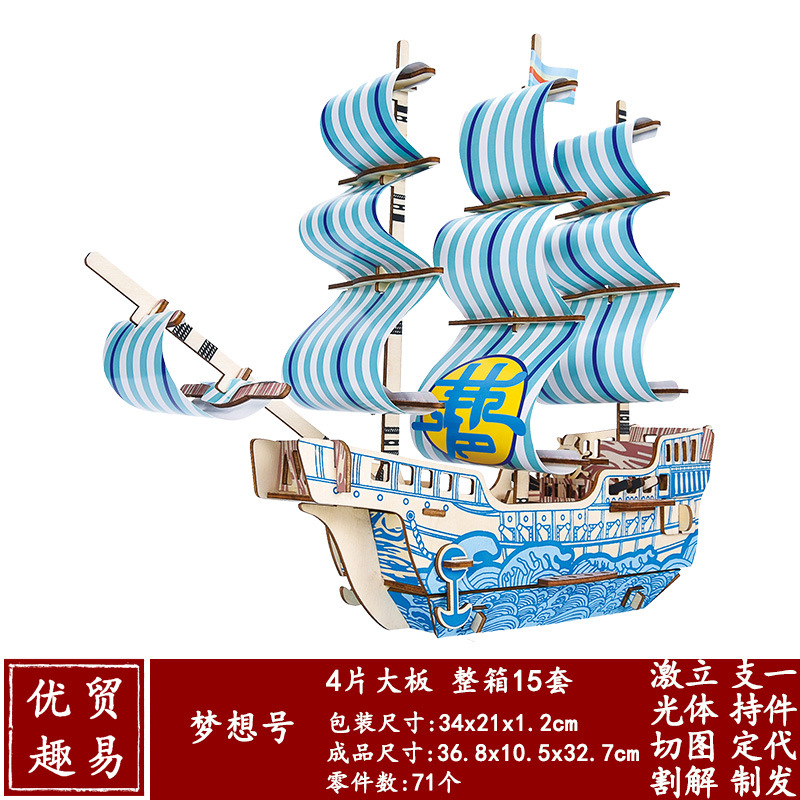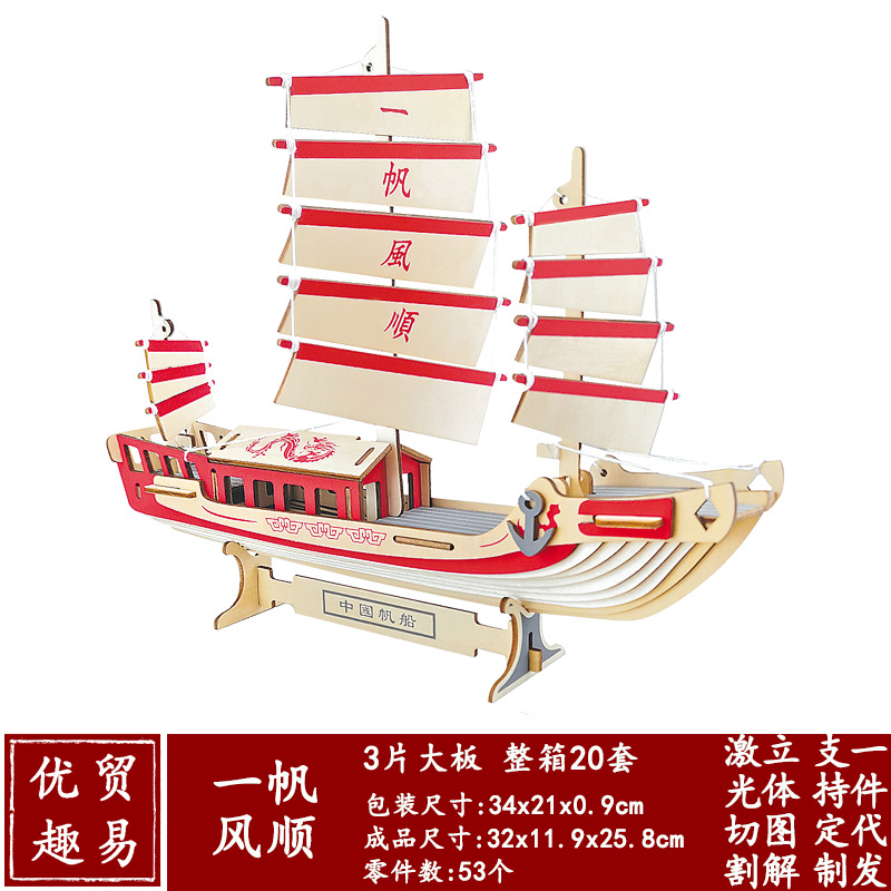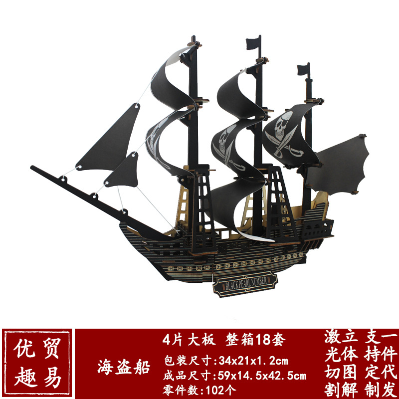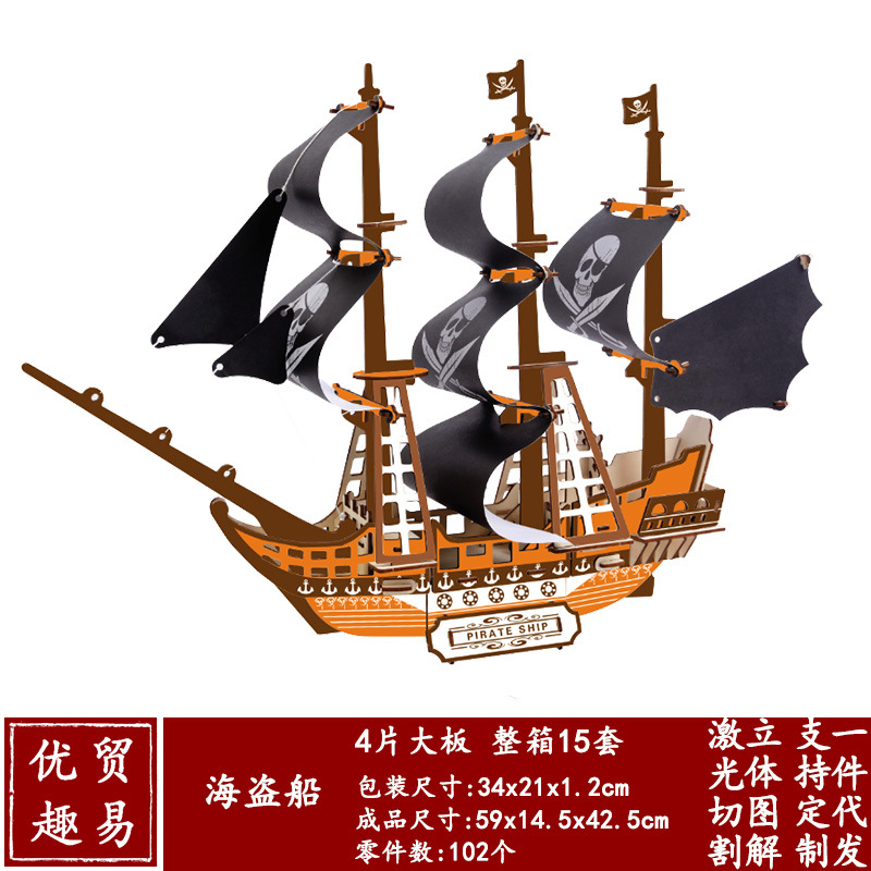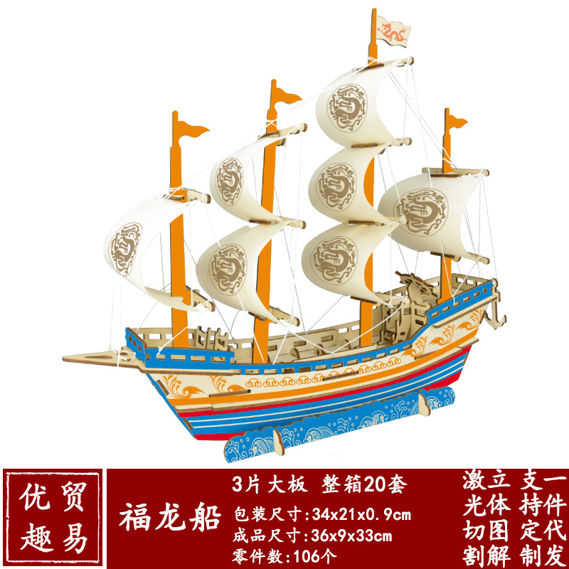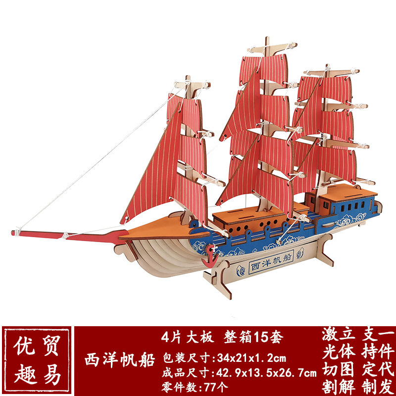 diy木制仿真古帆船模型木质手工拼装丝绸商船成人3d立体拼图玩具
