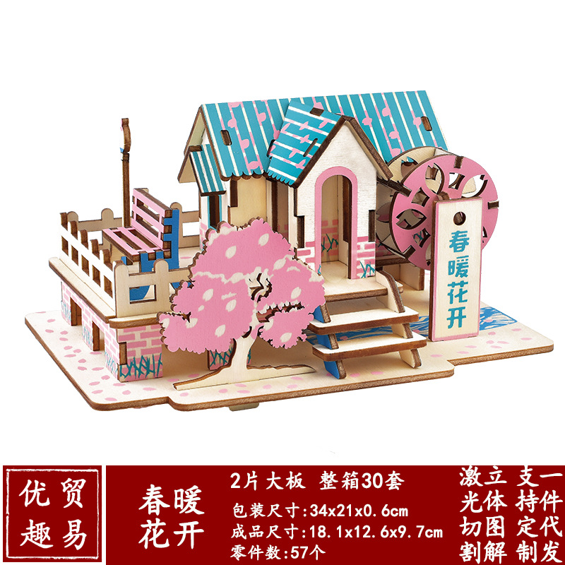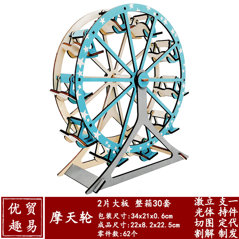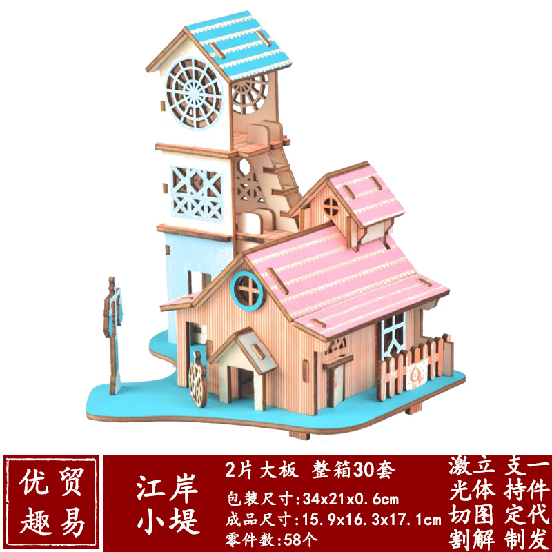 木制3D立体拼图益智玩具小学生摆件拼装建筑儿童手工积木质模型