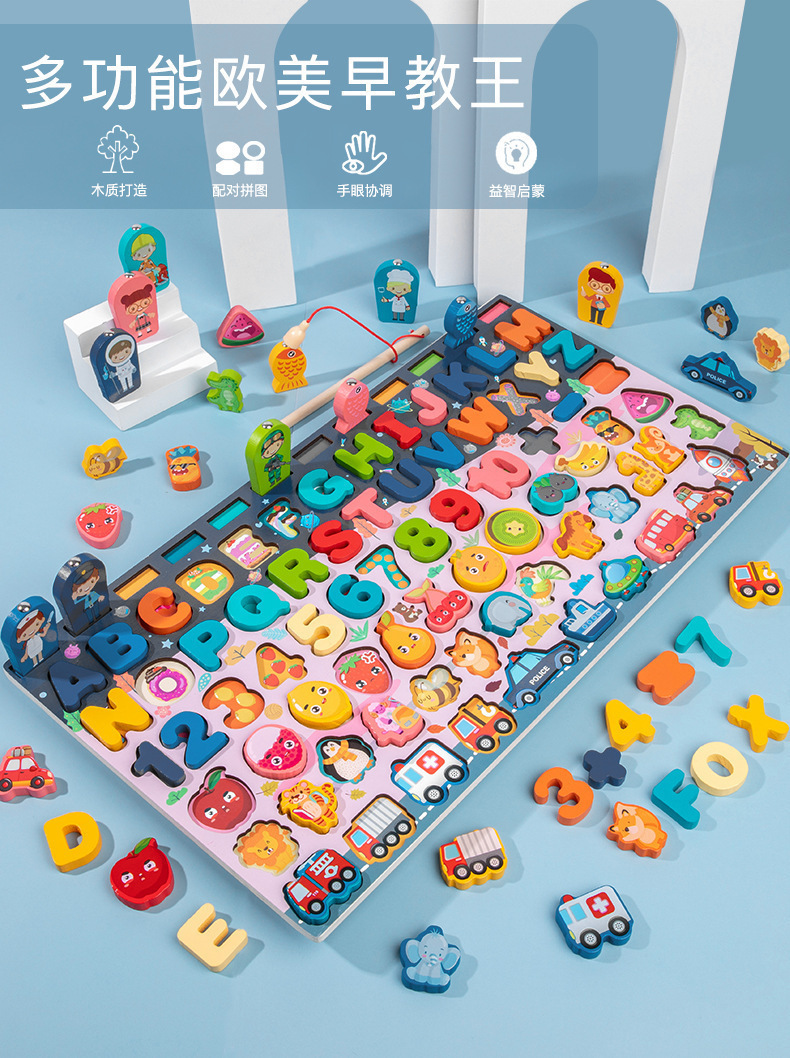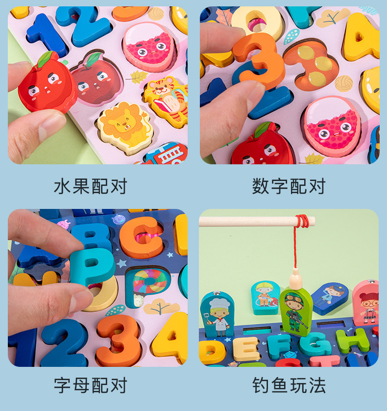 钓鱼对数板数字字母水果动物交通多功能早教认知拼板智力开发玩具