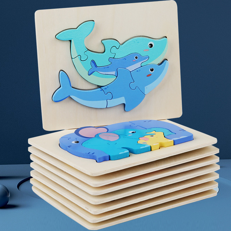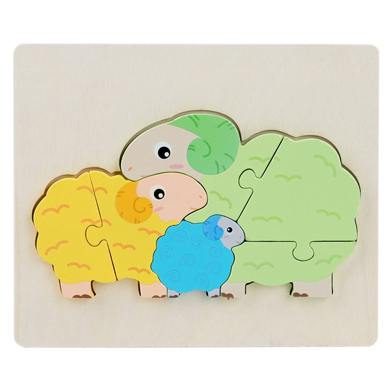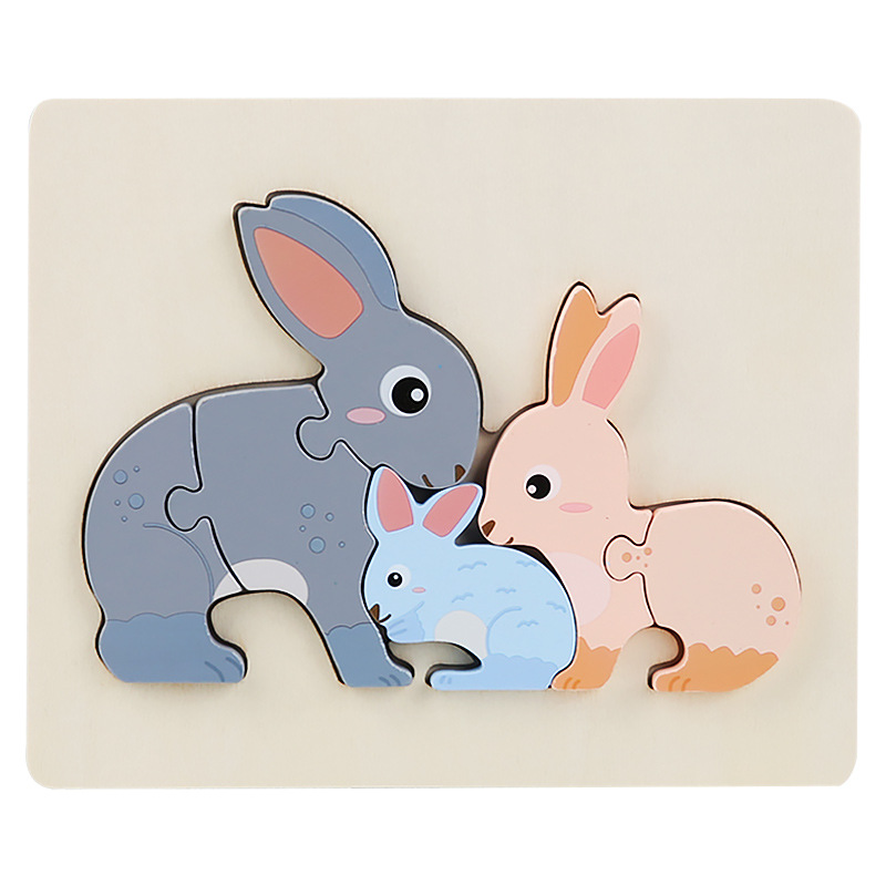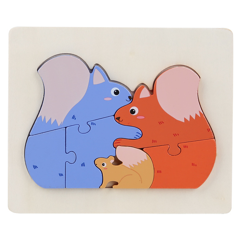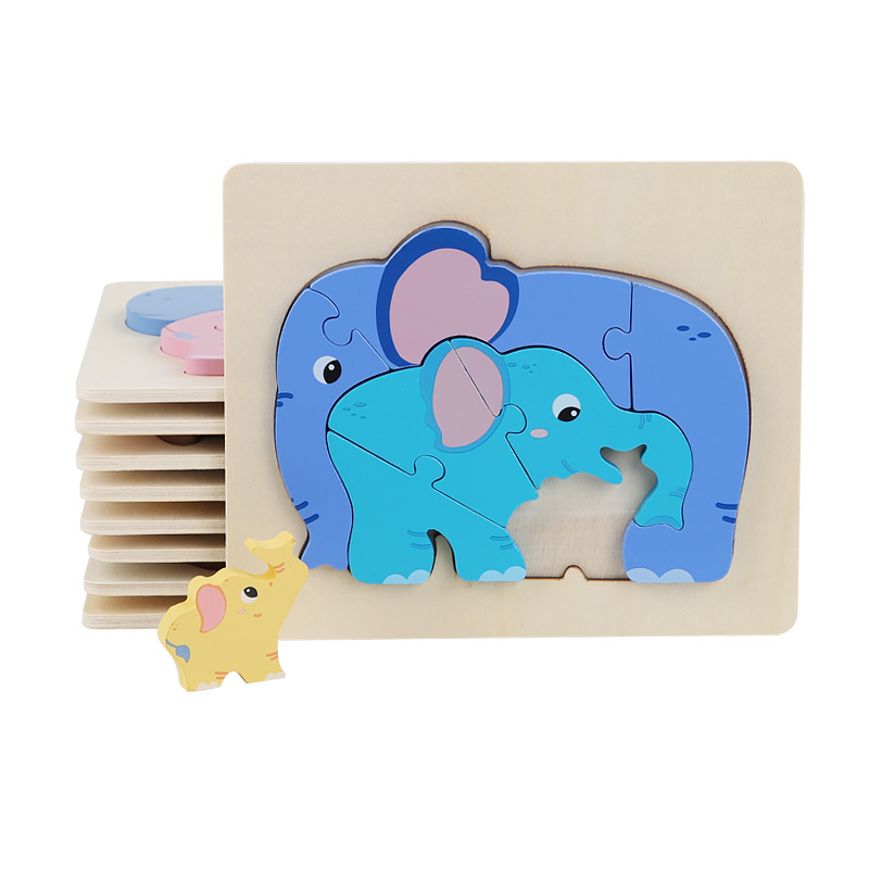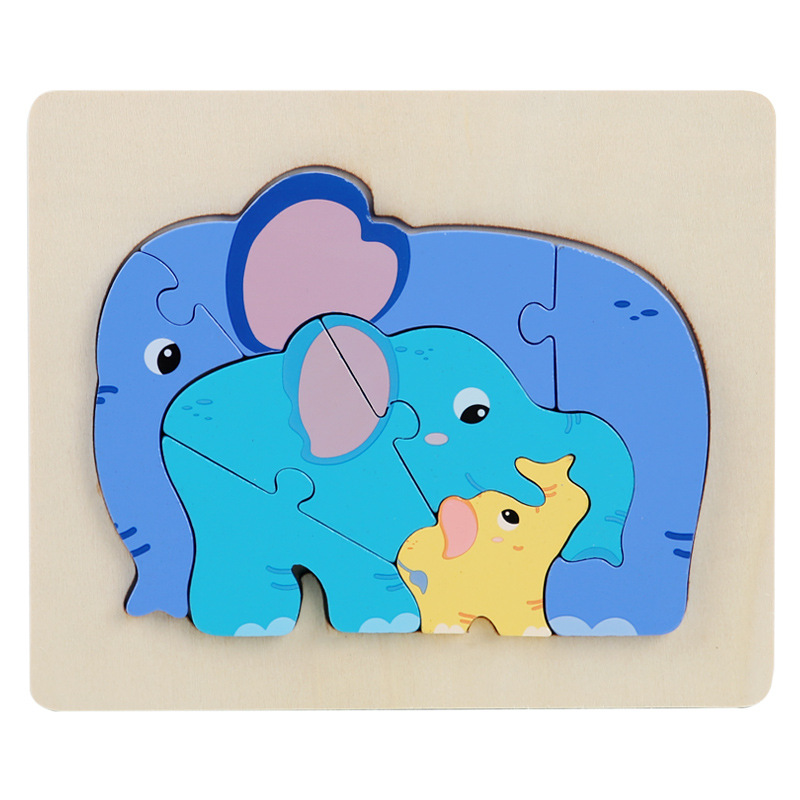 木质亲子拼装立体拼图婴幼儿卡通动物拼图板积木早教益智儿童玩具