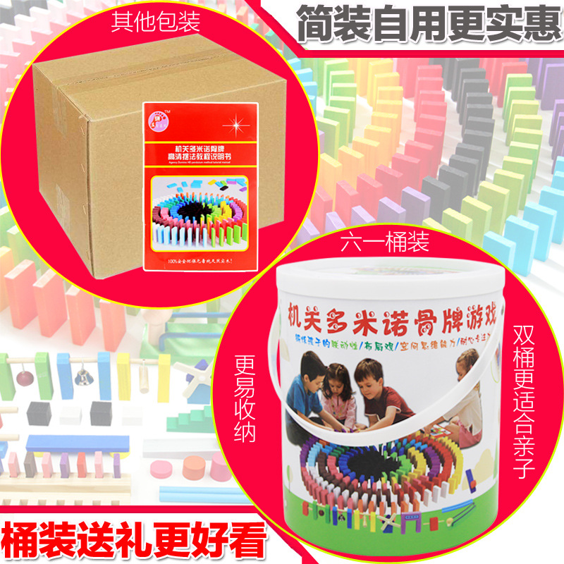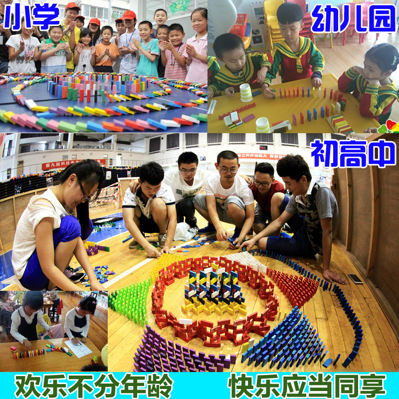 批发 120片七彩多米诺骨牌木制标准机关比赛积木儿童早教益智玩具