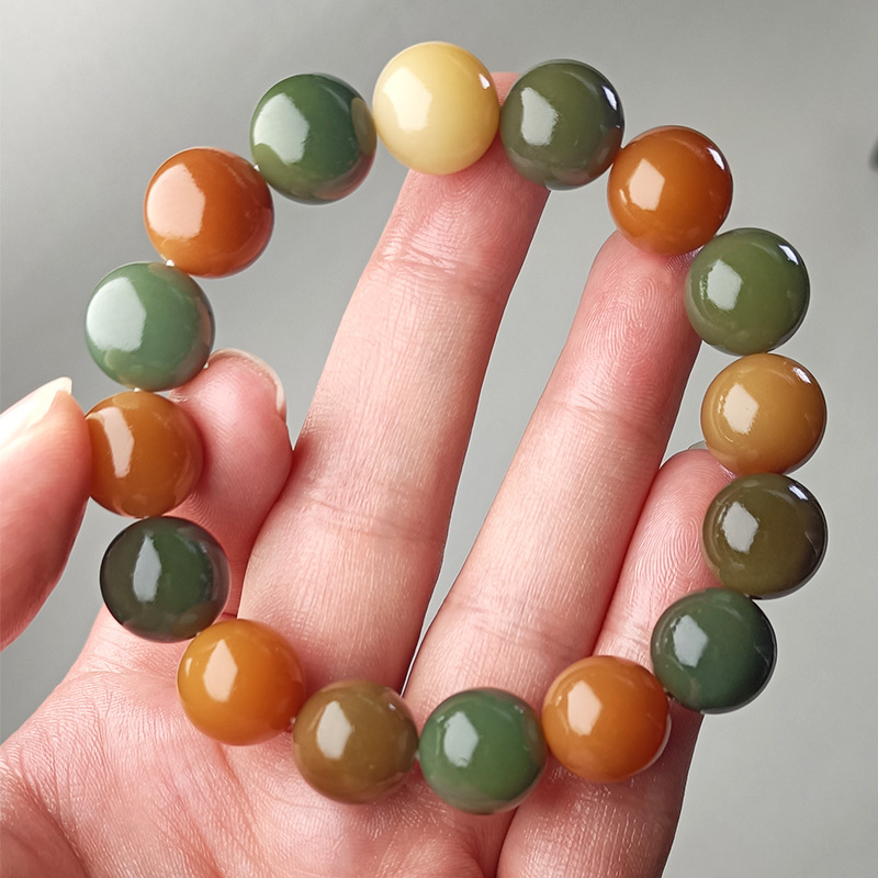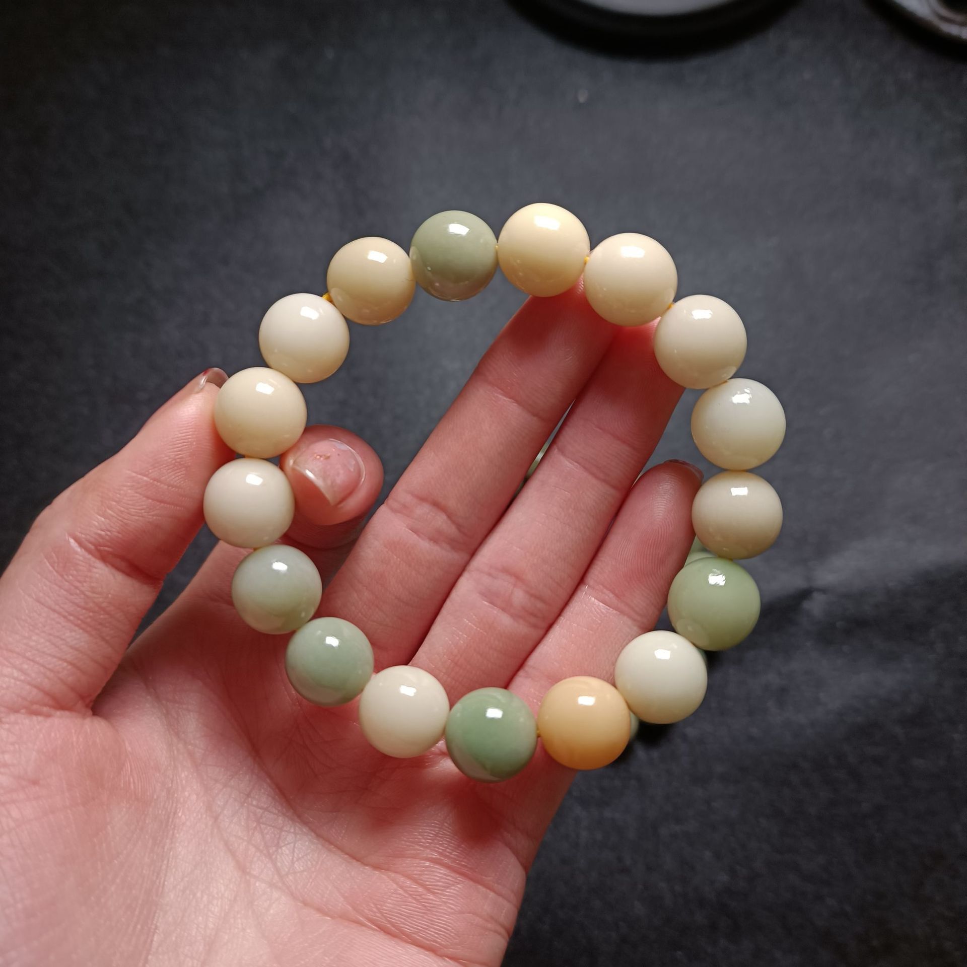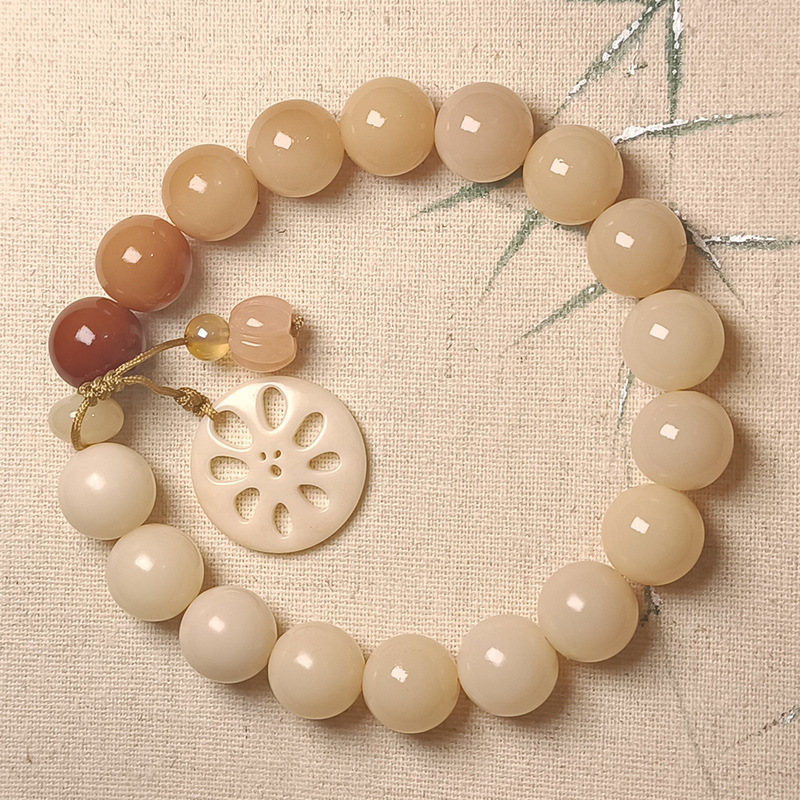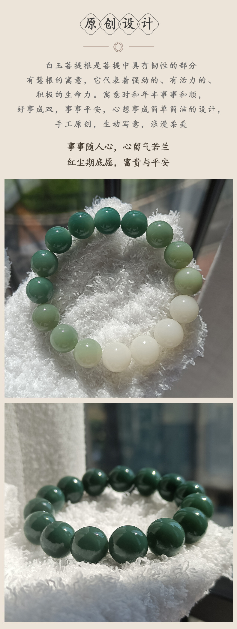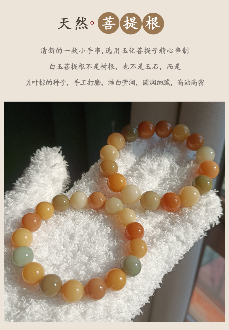 天然白玉菩提根手串飘花绕指柔多宝色山水料圆珠文玩佛珠手链批发