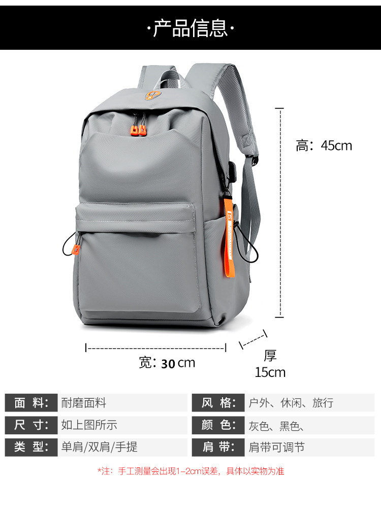 新款休闲时尚书包潮轻便黑色电脑包出行旅游双肩包批发