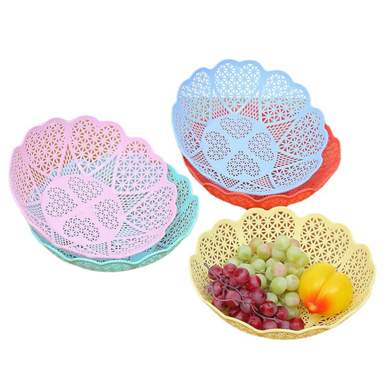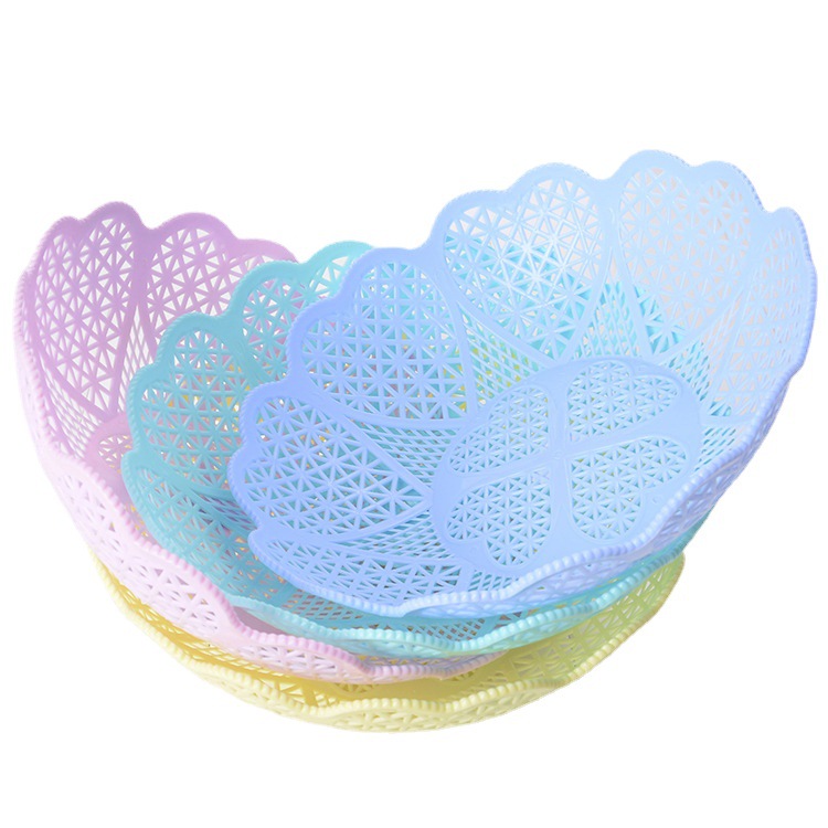 厂家直销糖果色塑料花边干果篮 家用炫彩水果篮2元店货源批发