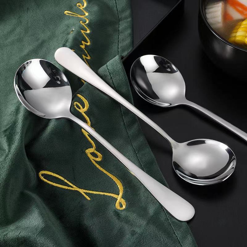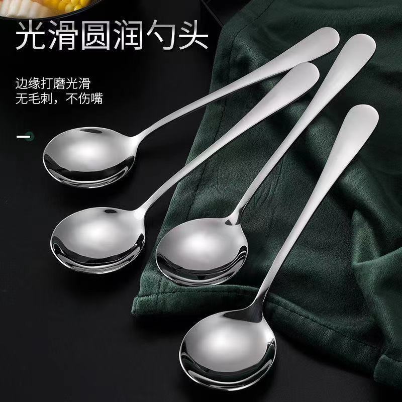 不锈钢创意加大圆勺调羹长柄甜品水果勺子家用大号饭勺汤匙厂批发