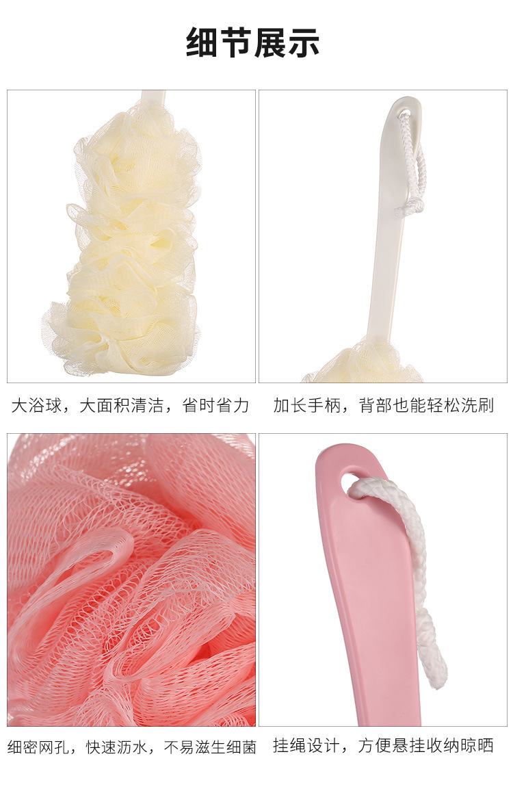 长柄洗澡刷搓澡刷双面带浴花沐浴刷清洁刷浴球洗浴刷搓背搓澡神器