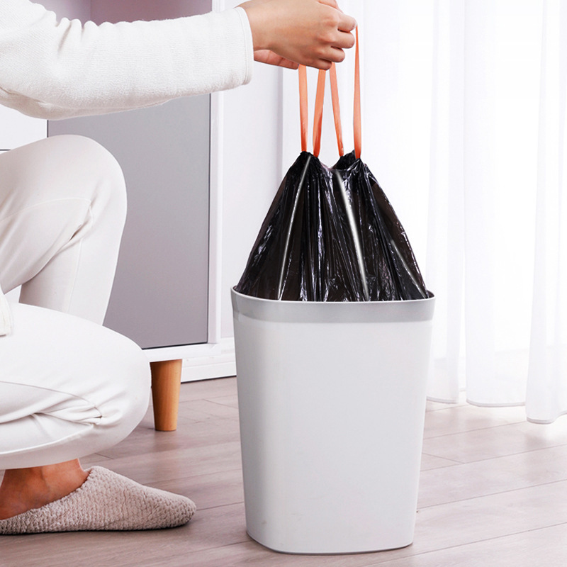 家用卫生抽绳垃圾袋手提式加厚自动收口厨房塑料袋大号黑色袋子