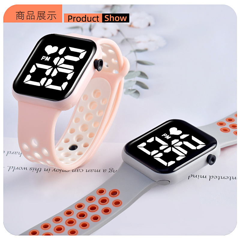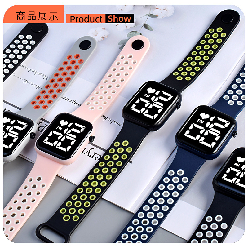厂家专供新方形手表初高中学生led时尚外贸热销双色带防水电子表