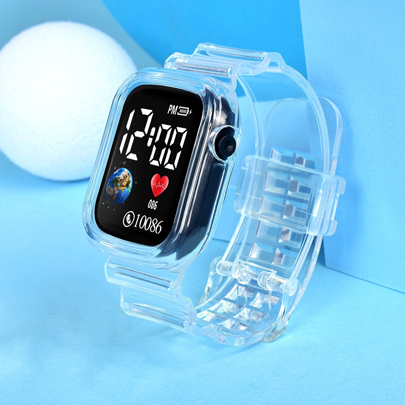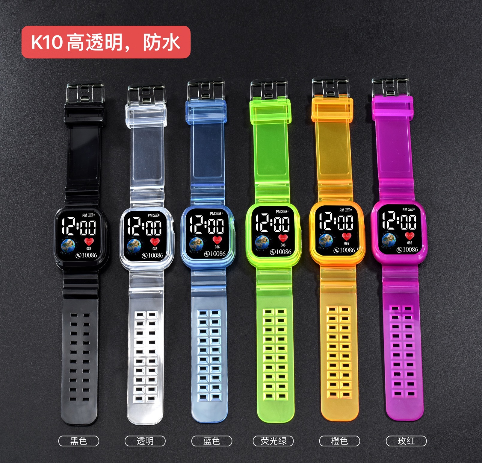 跨境新款透明带K10地球款led电子手表男女学生时尚运动多功能手表