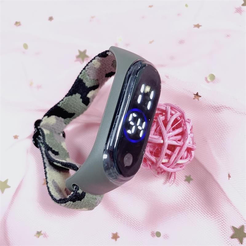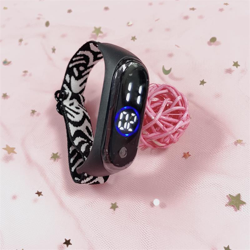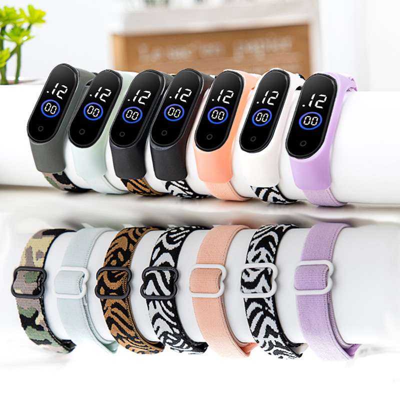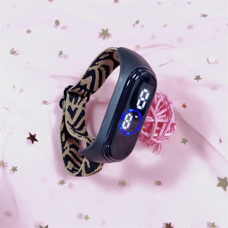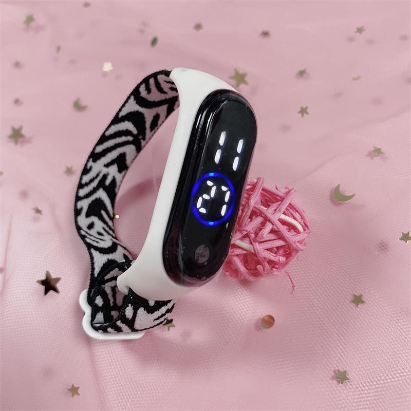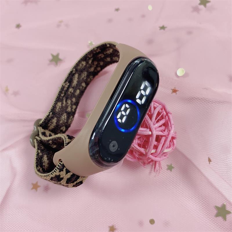 现货新款弹力豹纹带LED手表创意尼龙手环表男女学生防水电子手表