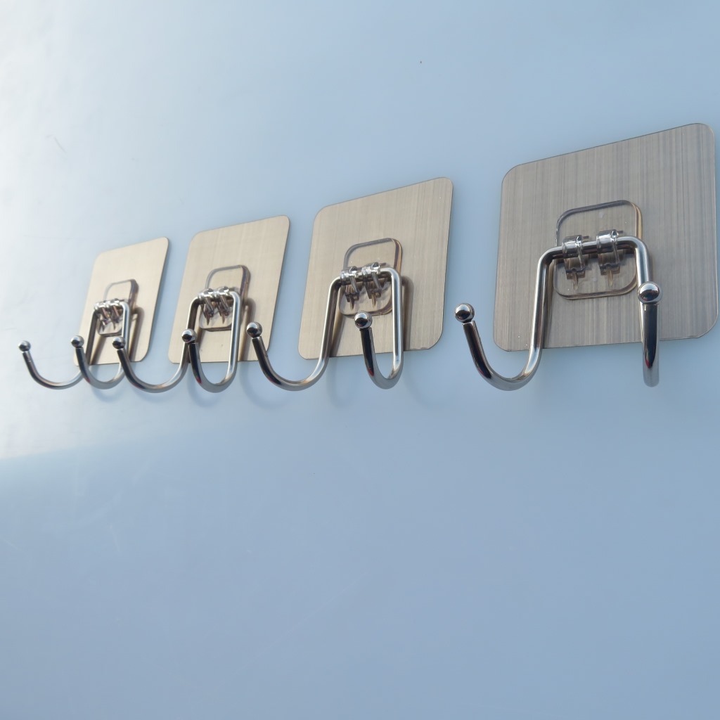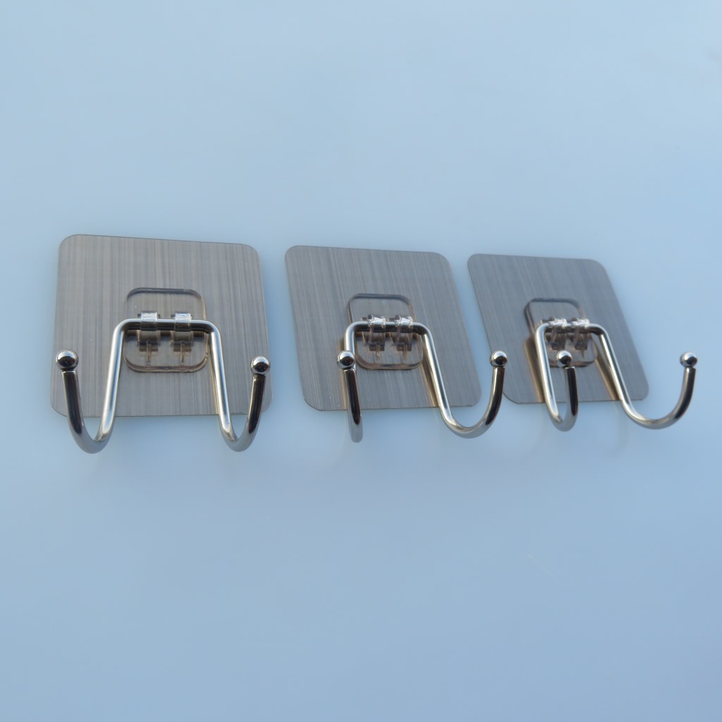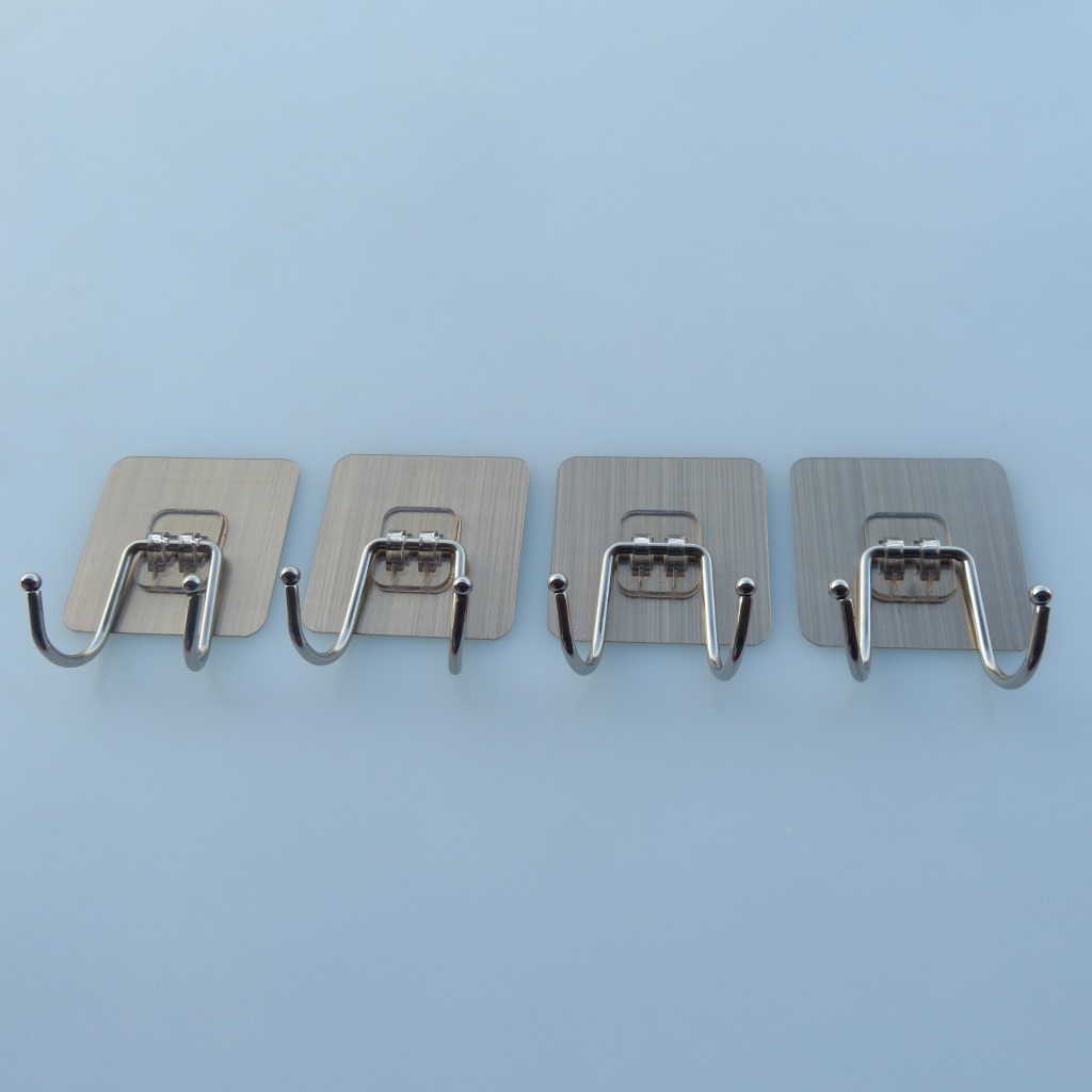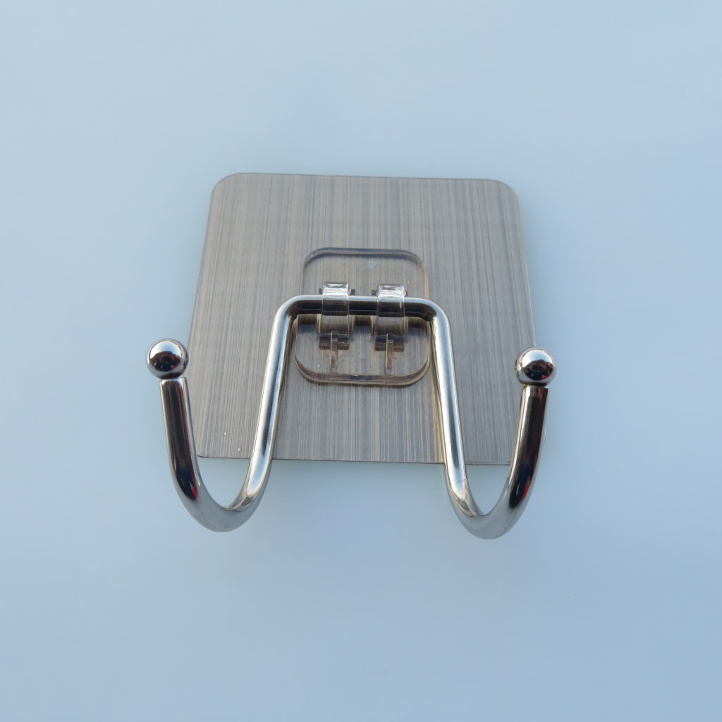 高亮拉丝无痕双挂钩强力墙壁免钉贴不锈钢双钩免打孔创意门后粘钩