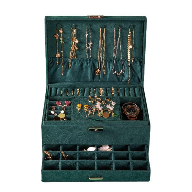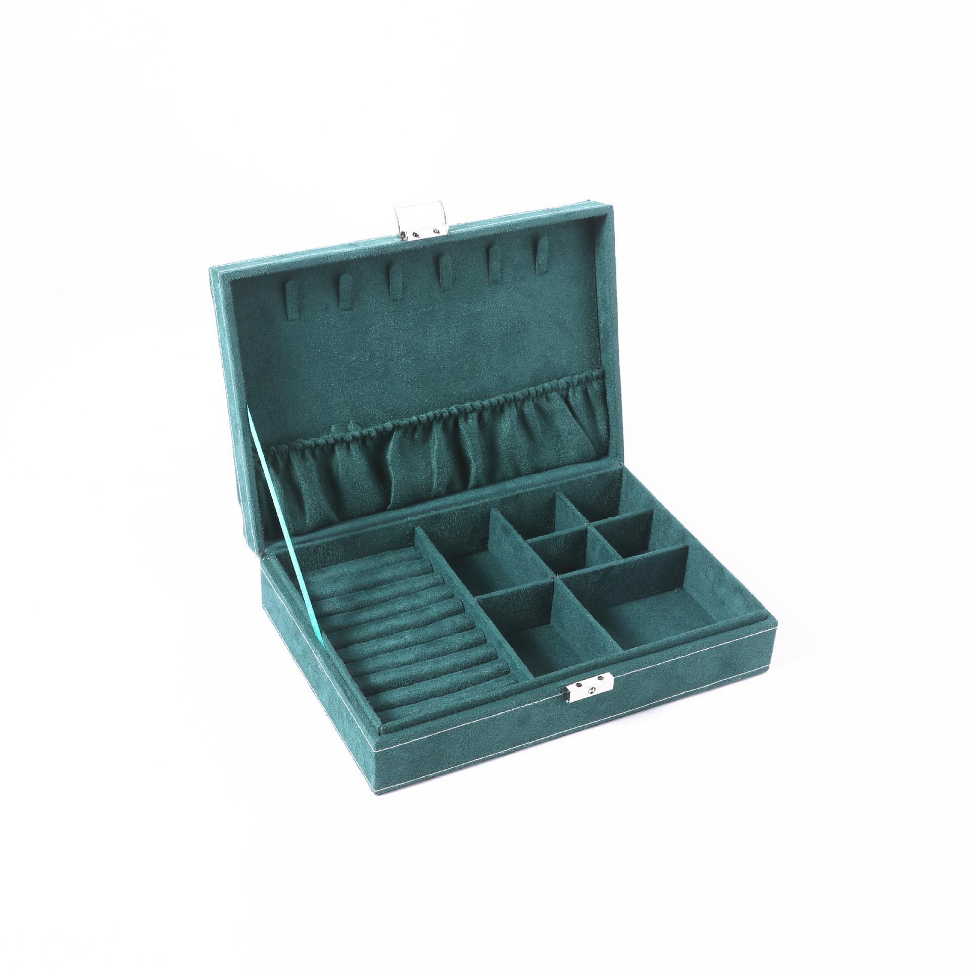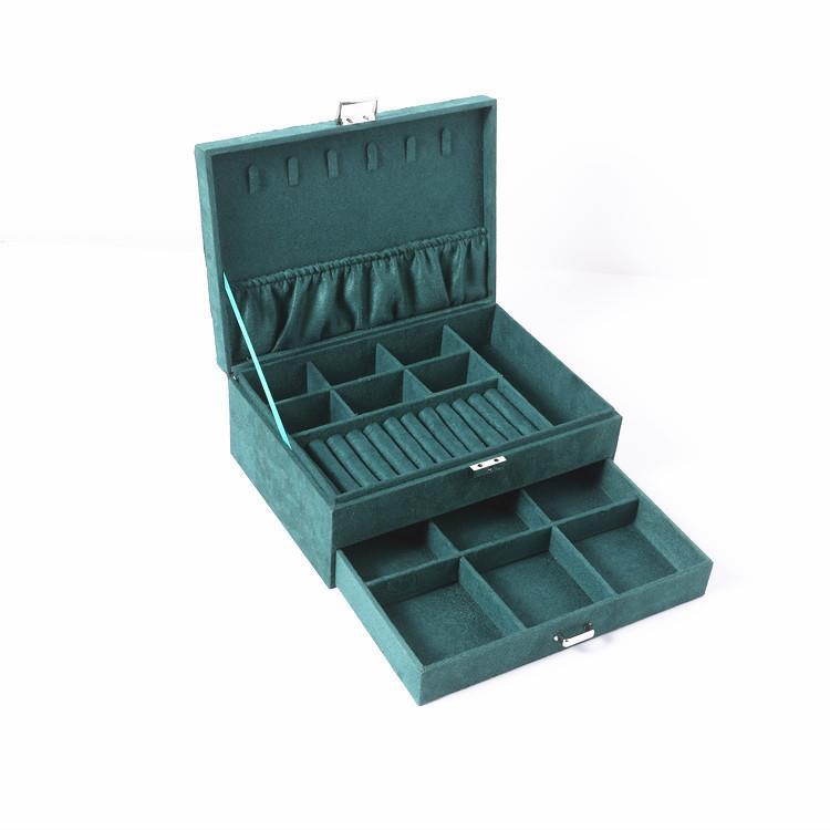 墨绿色绒布单双三层珠宝箱首饰收纳盒耳环项链手镯首饰防尘