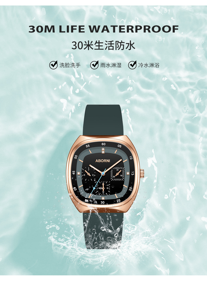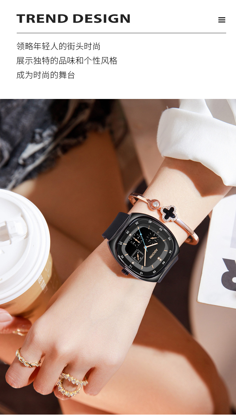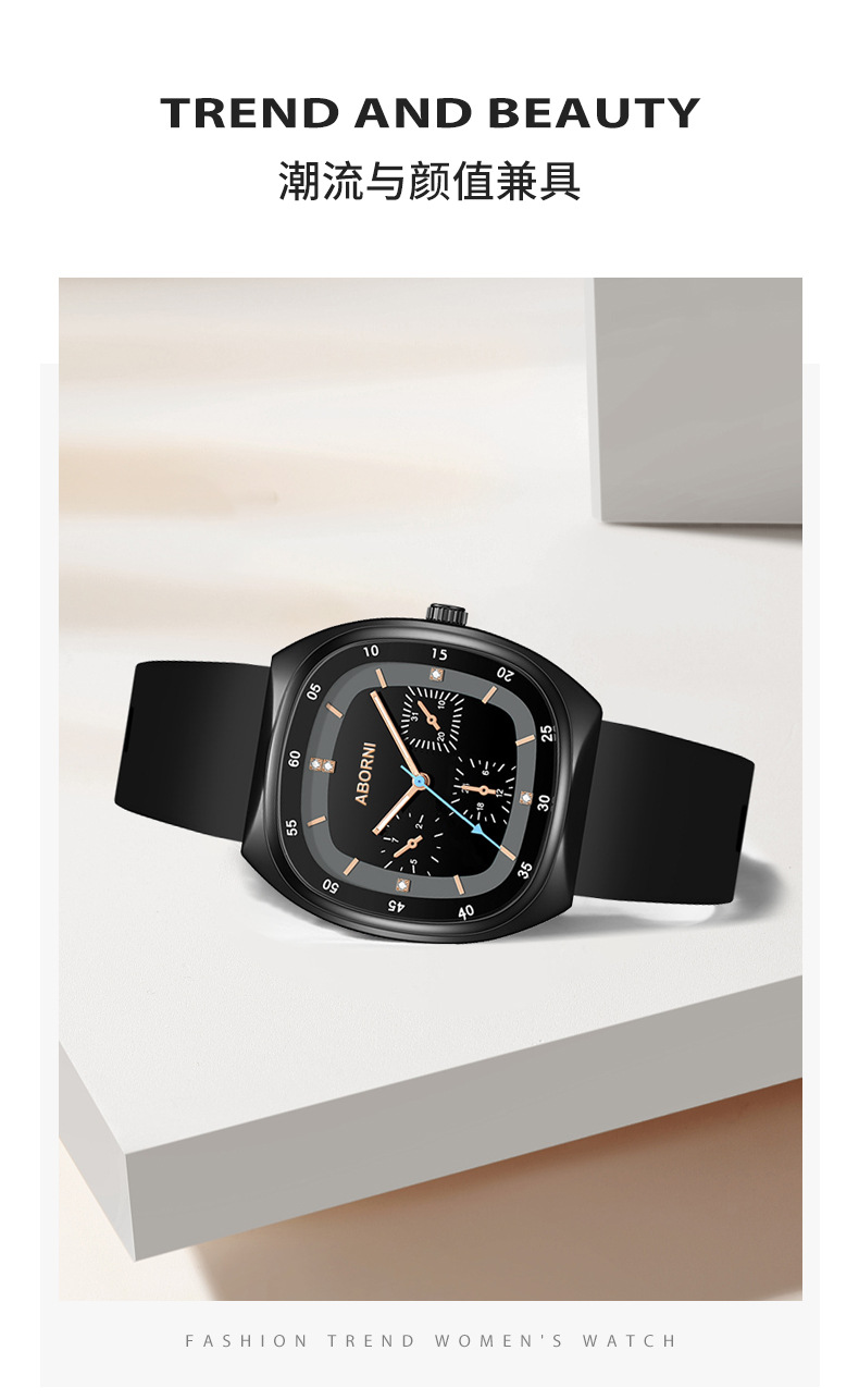亚铂尼时尚大方表硅胶带腕表三针石英手表女直播爆款防水女士手表