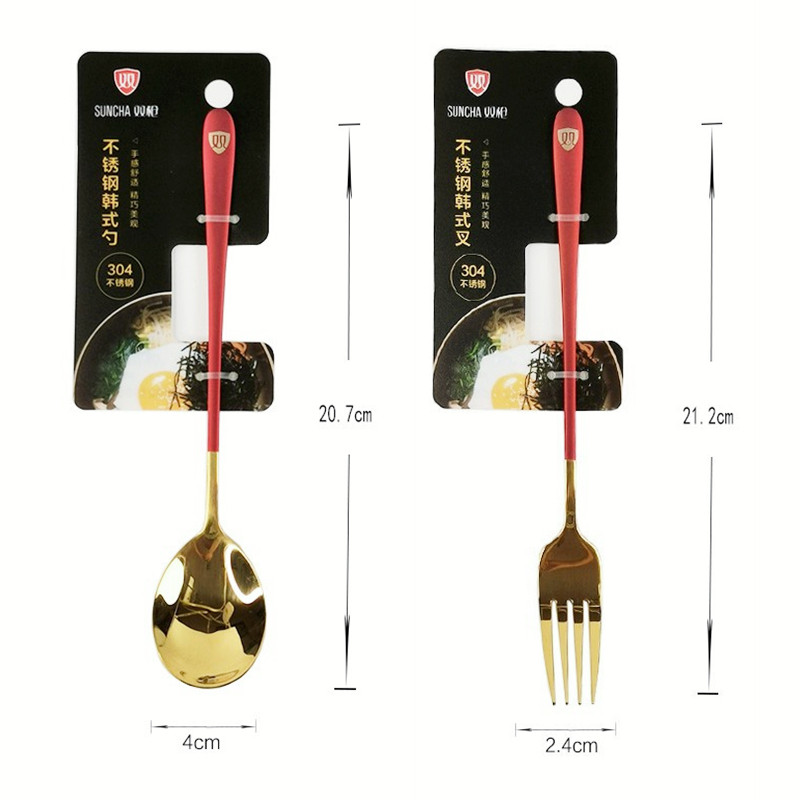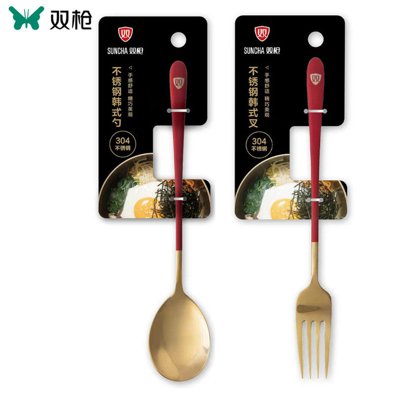 双枪不锈钢勺叉韩式家用长柄勺子不锈钢餐具刀叉精致甜品小勺子女