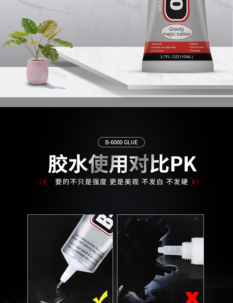 B6000针管胶水DIY手工制作发饰品发夹手机壳贴钻镶钻蝴蝶结液体胶