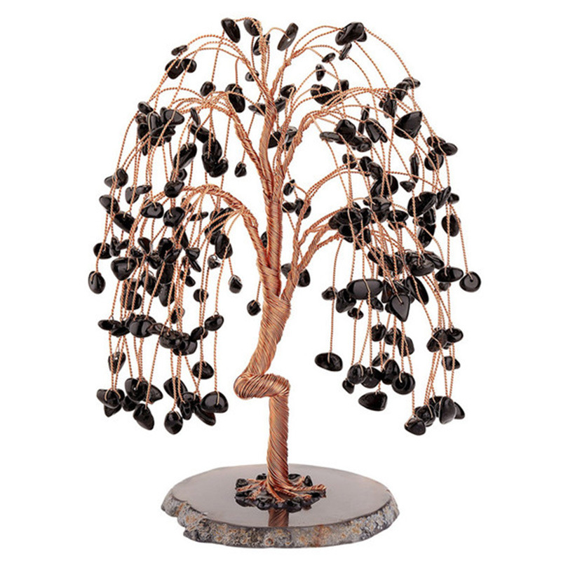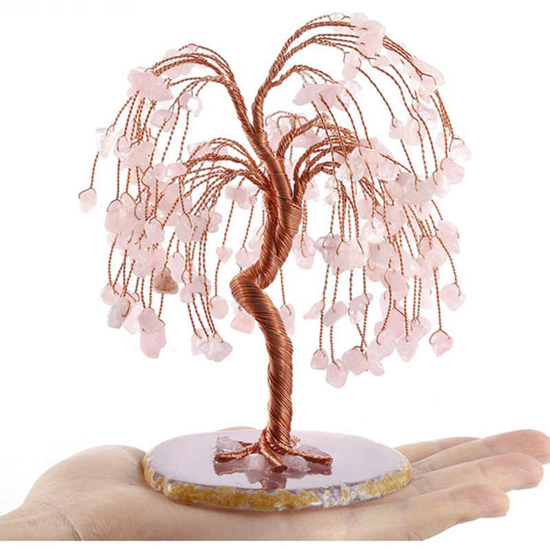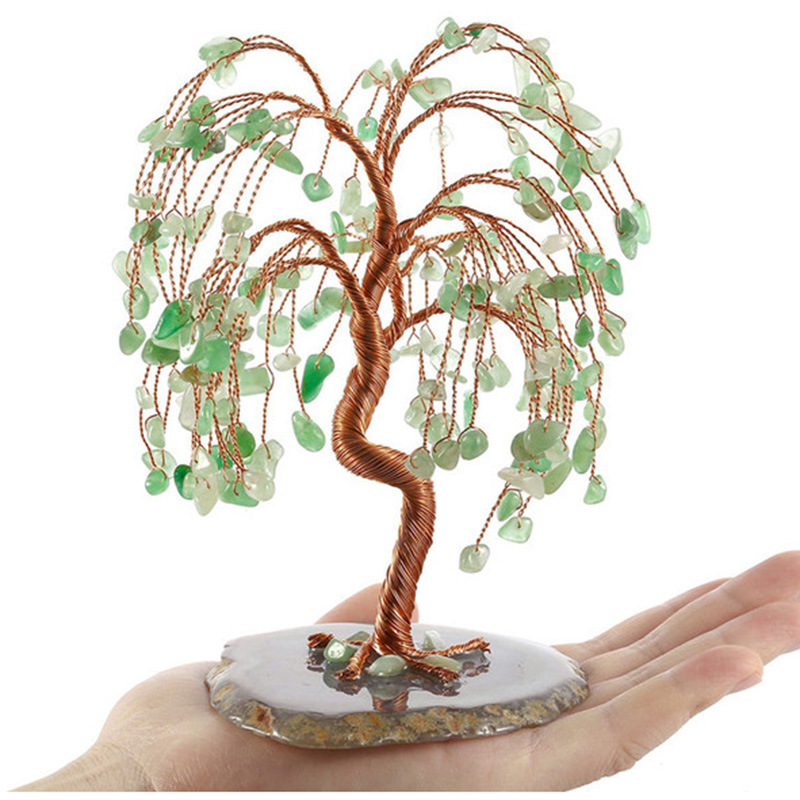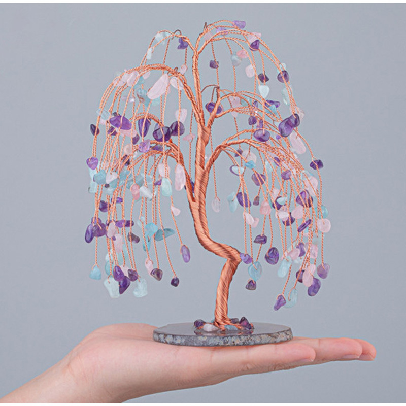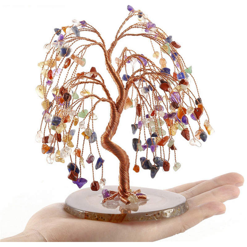 外贸批发天然水晶树玛瑙片底座发财树水晶七宝石色碎石查克拉摆件