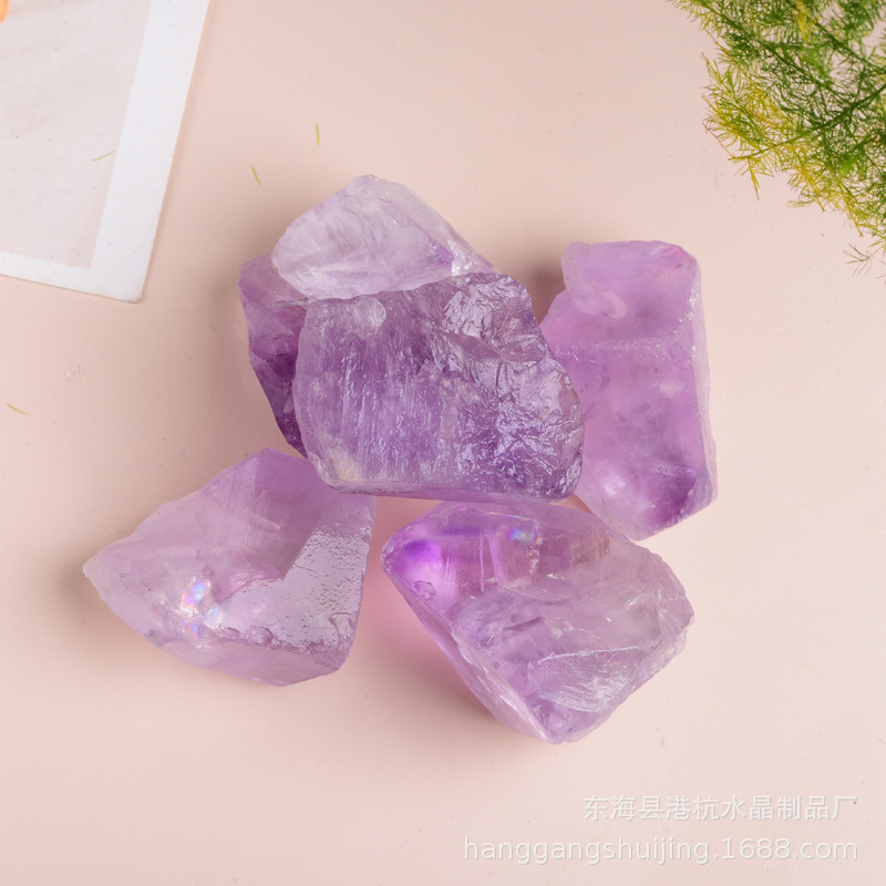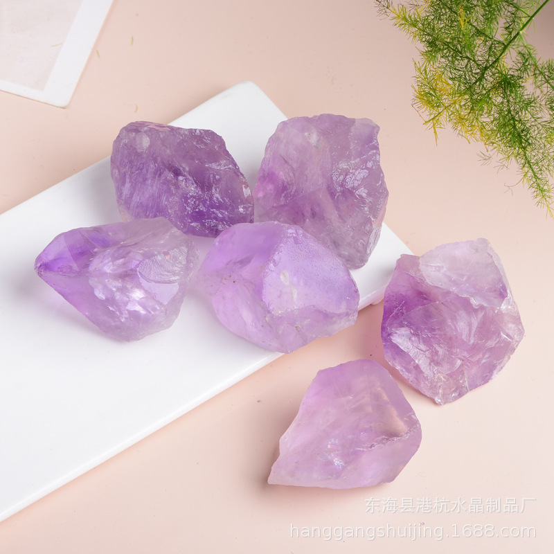 天然浅紫水晶原石 香薰扩香石 鱼缸花盆摆饰消磁水晶碎石厂家批发