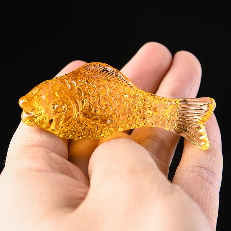 水晶碎石消磁鱼缸造景DIY鲤鱼装饰年年有余礼品黄水晶鱼摆件