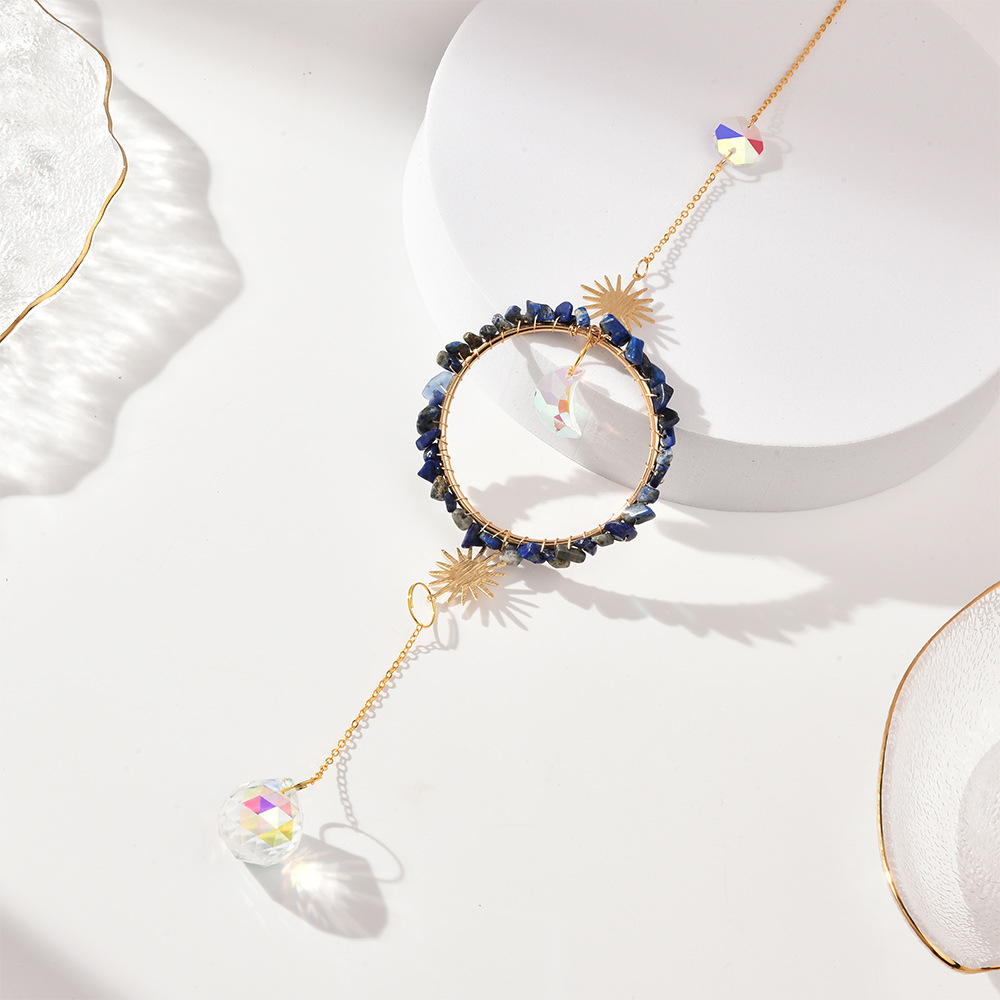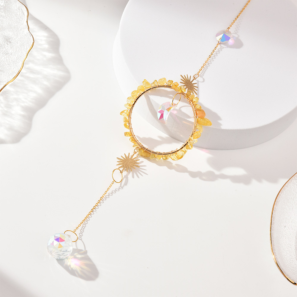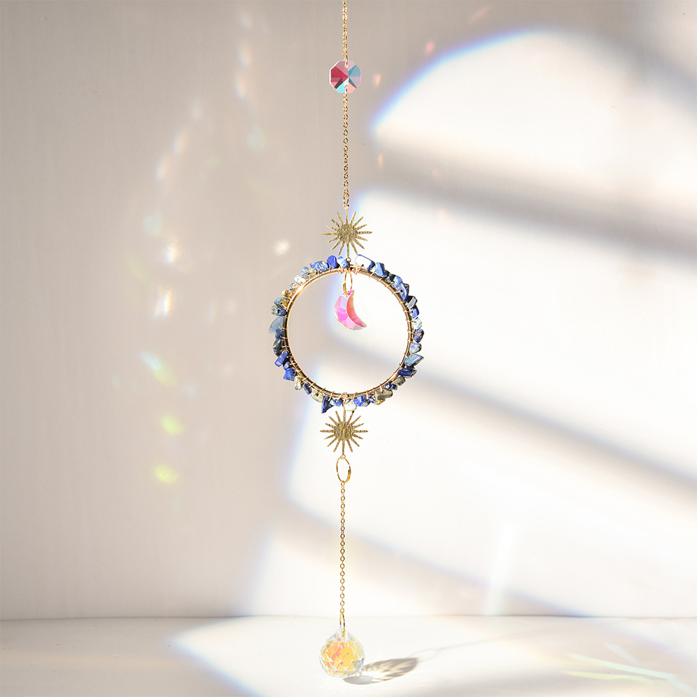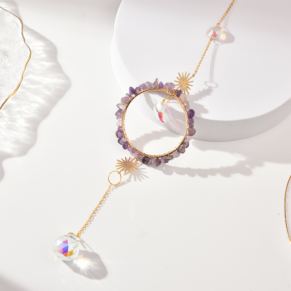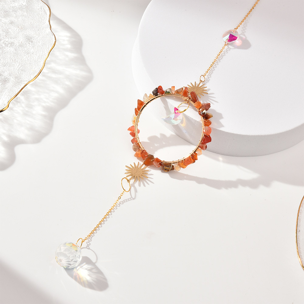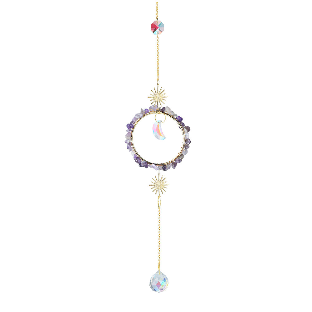 厂家直供亚马逊跨境货源彩虹花园装饰天然碎石水晶太阳捕手挂件