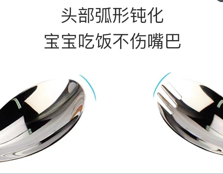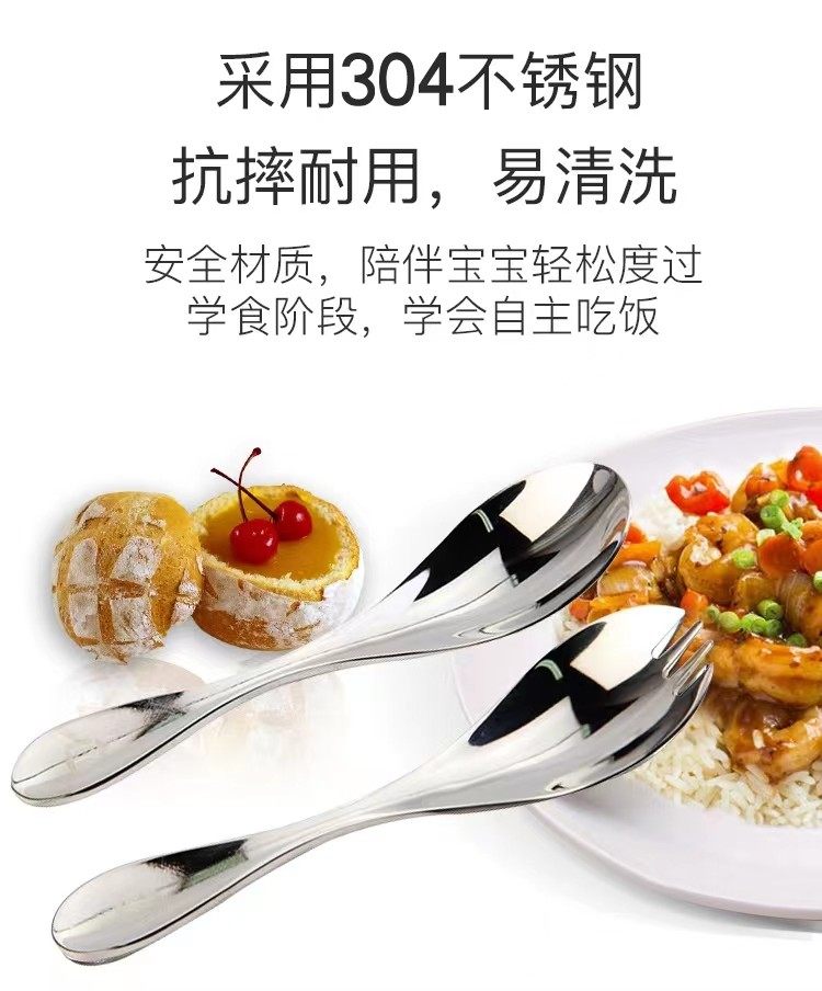 双枪儿童勺子叉勺宝宝学吃饭训练婴儿叉子餐具自主进食饭勺不锈钢