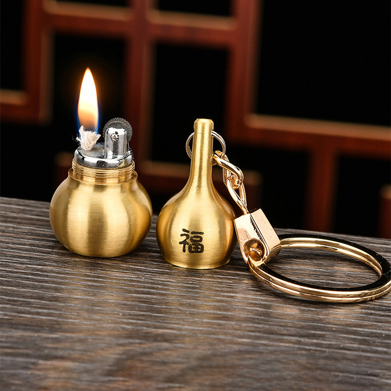 首领CF202福字纯铜钥匙扣挂件防水砂轮葫芦工艺品煤油打火机收藏