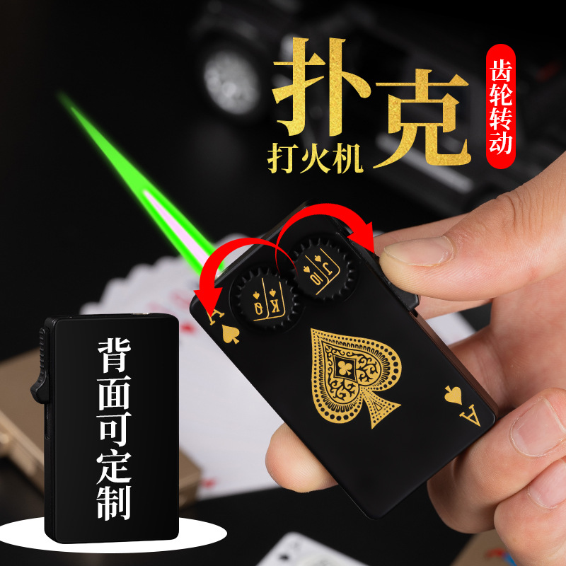 新品创意齿轮联动扑克打火机防风绿火夜光派对夜店酒吧专用批发