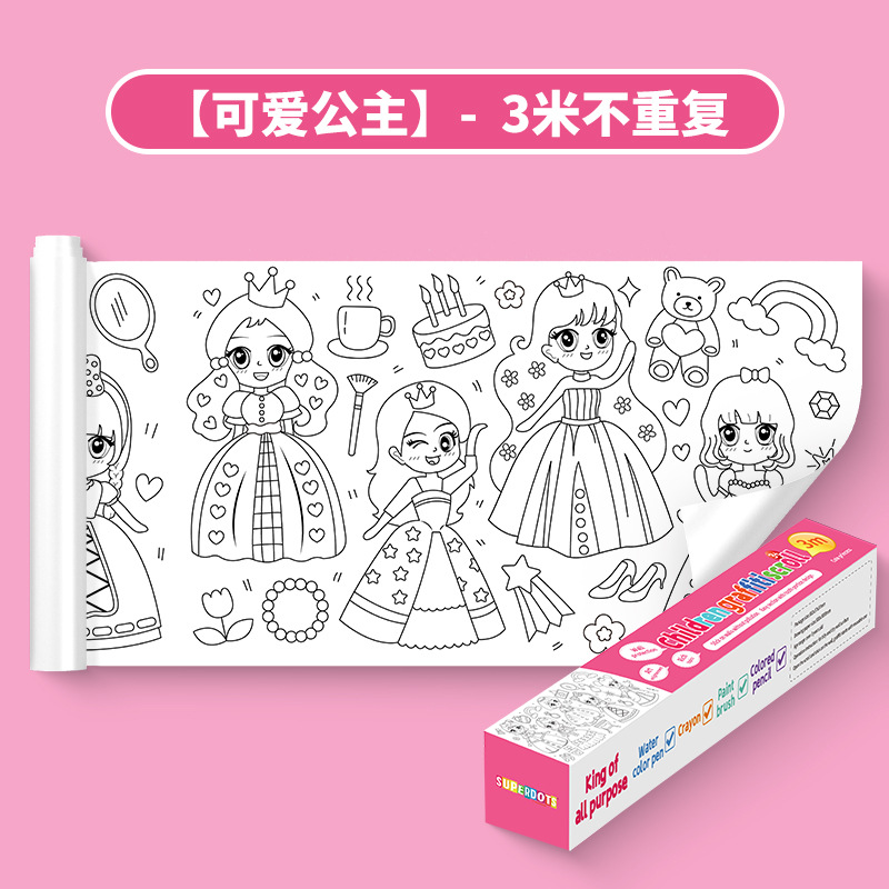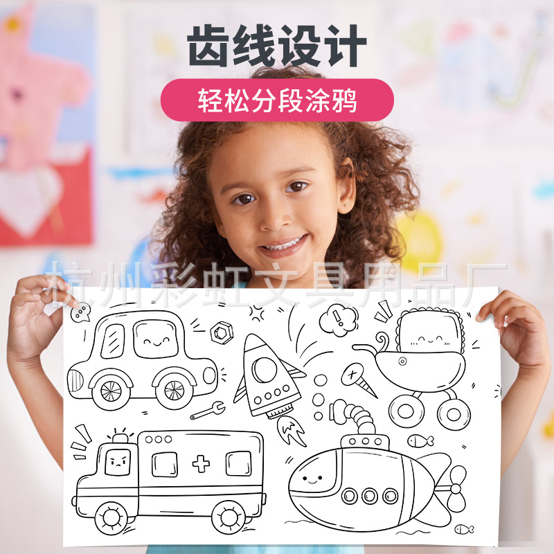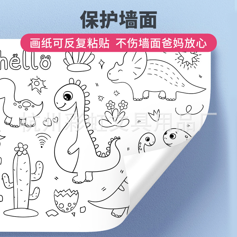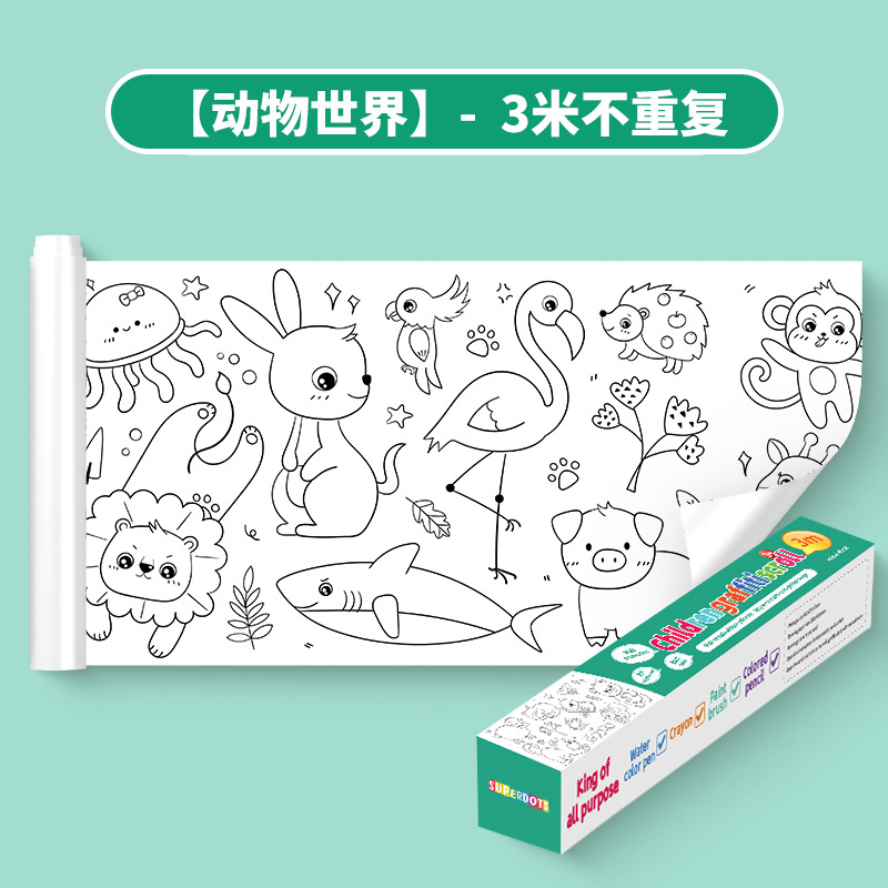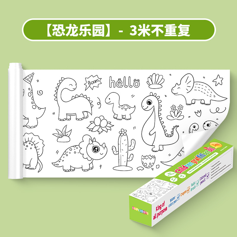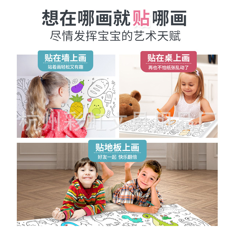 跨境爆品儿童长画卷涂色填色可贴墙绘画纸幼儿园宝宝画布不脏墙