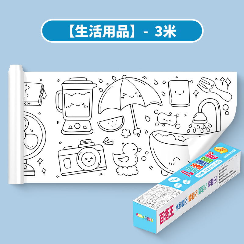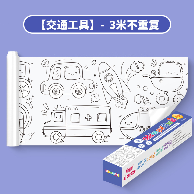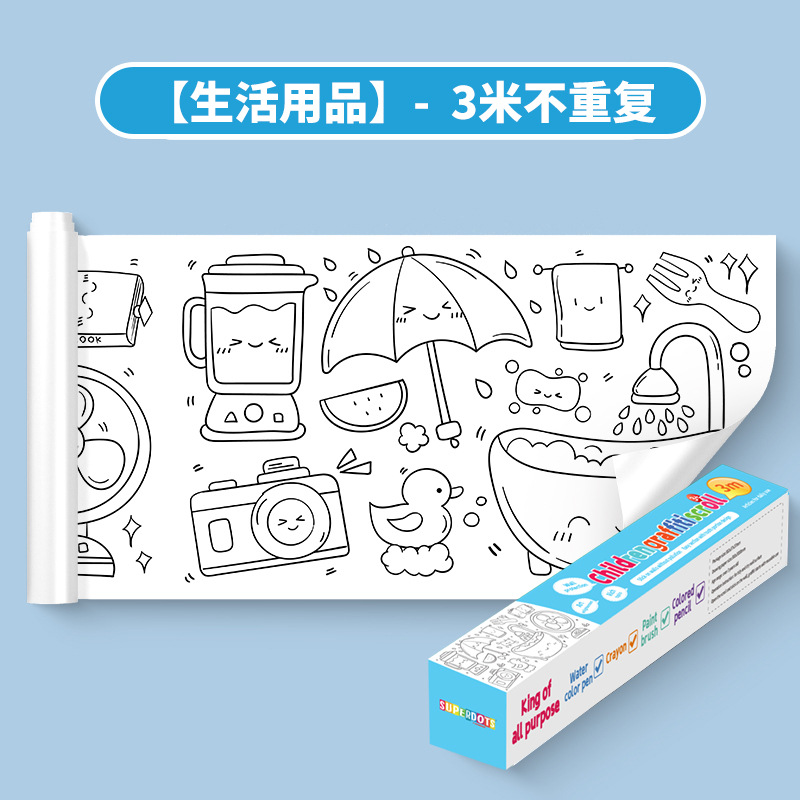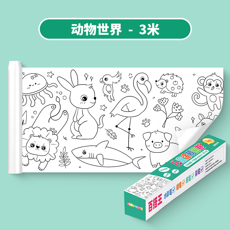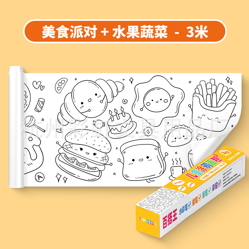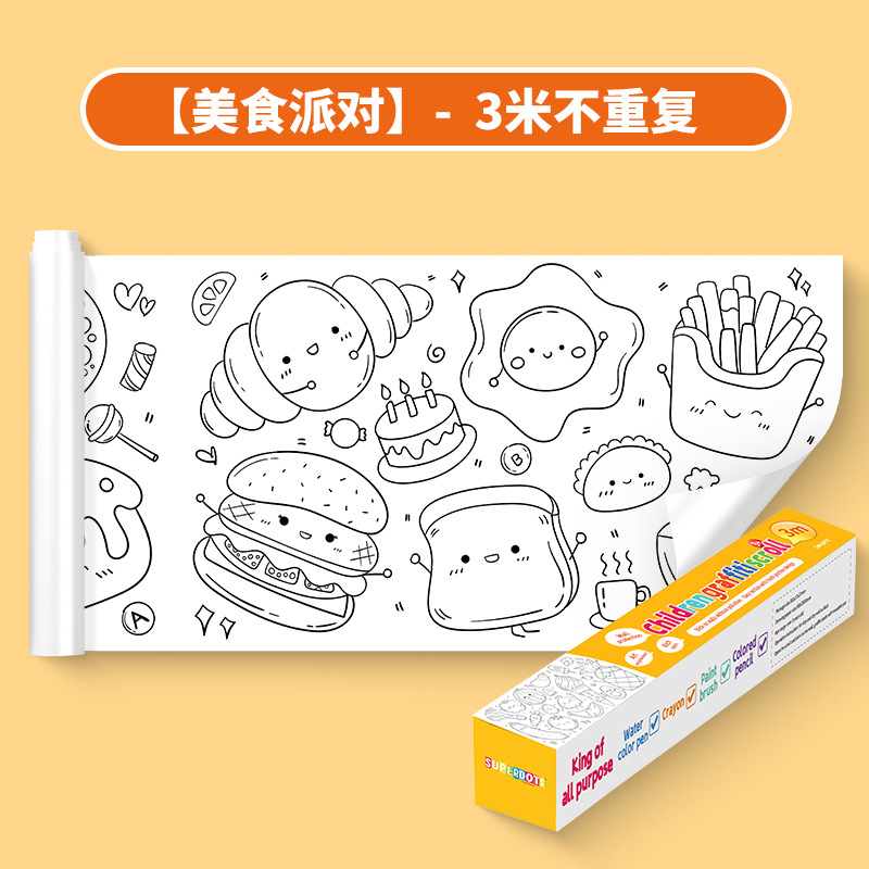 跨境爆品儿童长画卷涂色填色可贴墙绘画纸幼儿园宝宝画布不脏墙