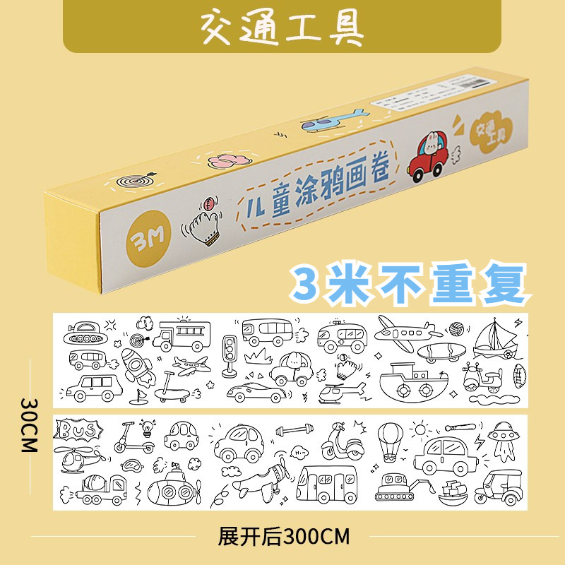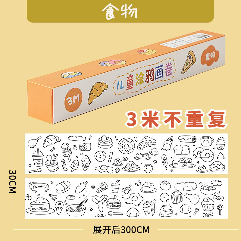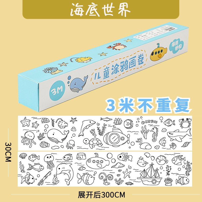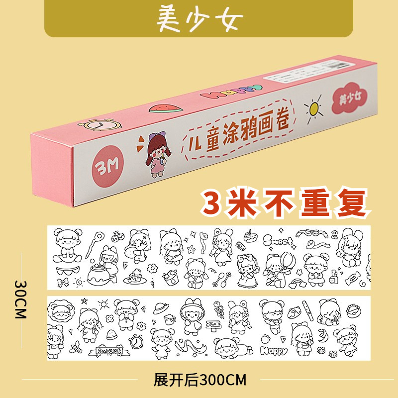 MOKA涂鸦画卷填色绘画画纸长画卷幼儿园宝宝涂色画布可贴墙不脏墙