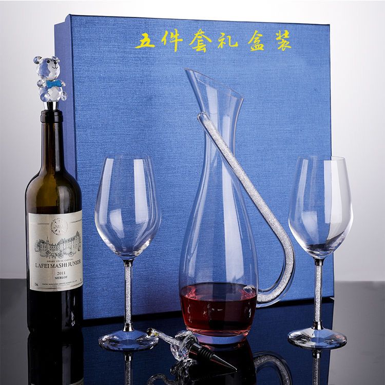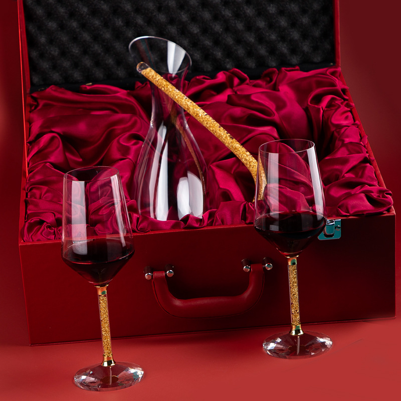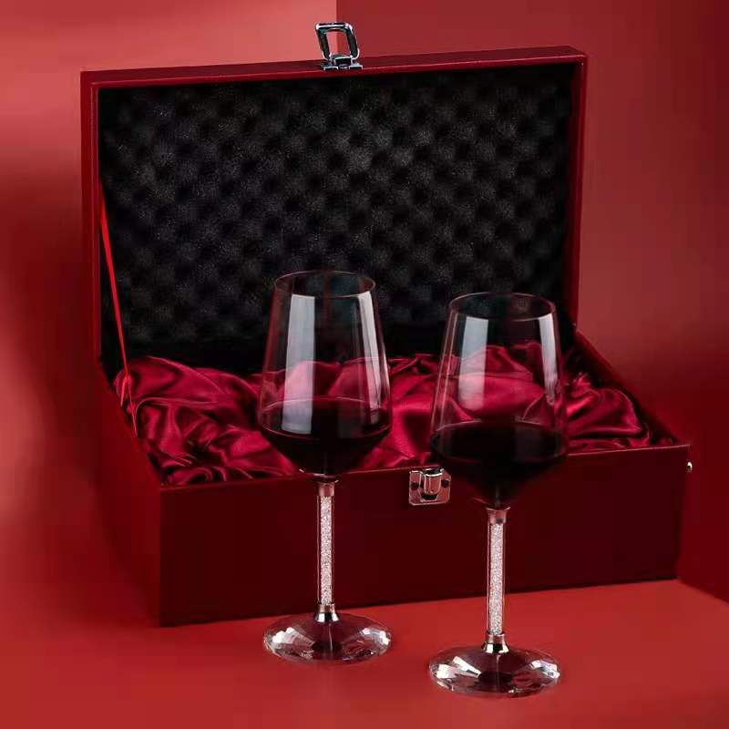 厂家直销高脚杯水晶带钻红酒杯家用套装创意商务酒店金箔红酒杯