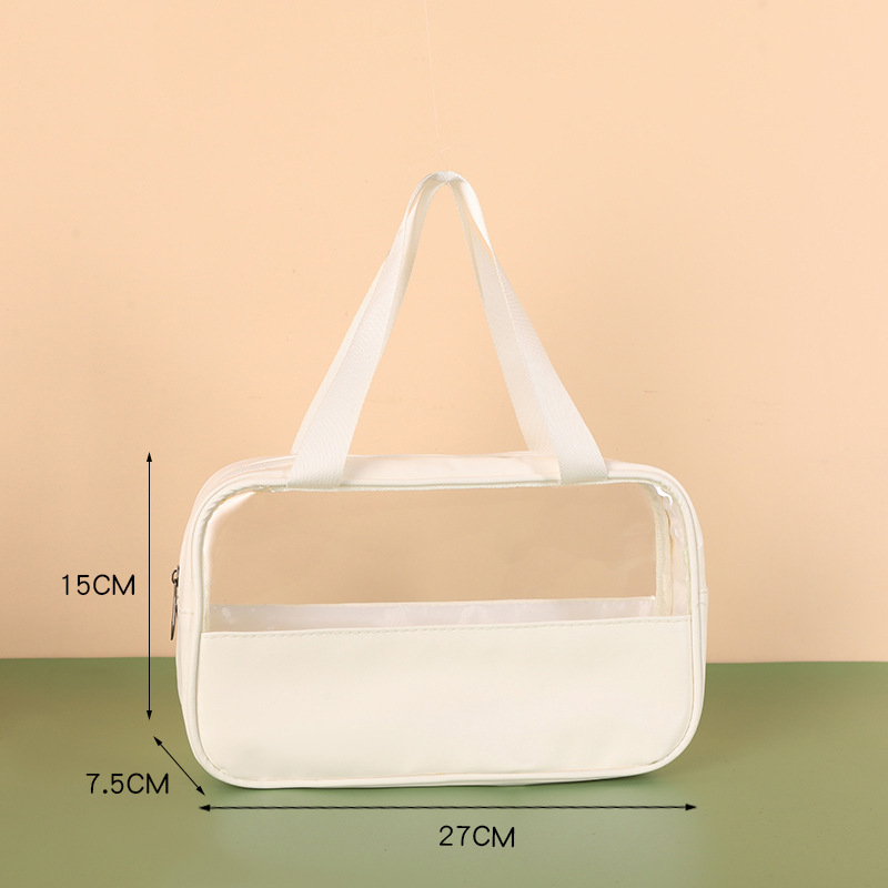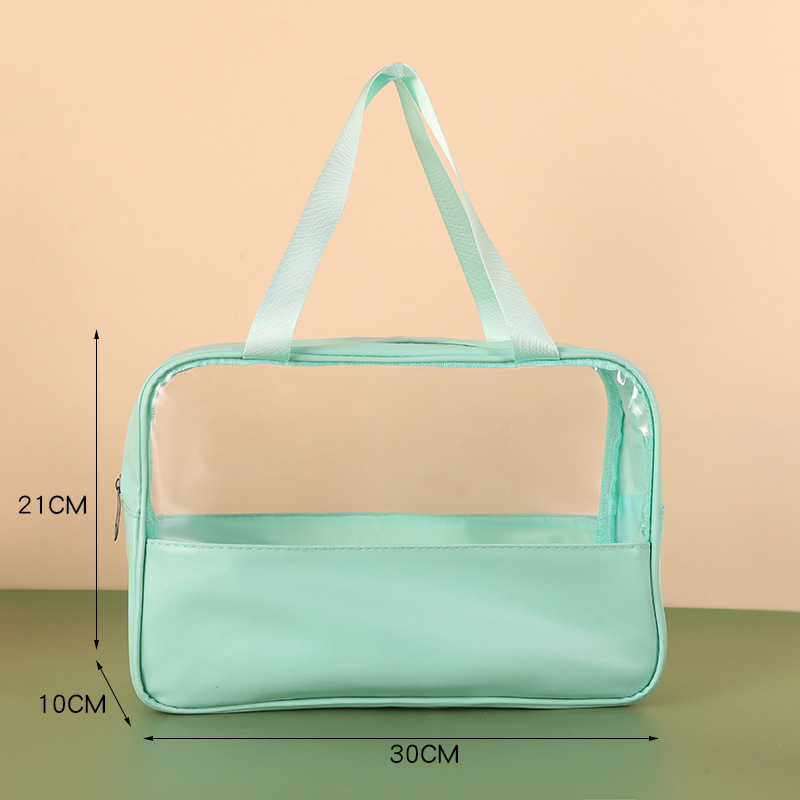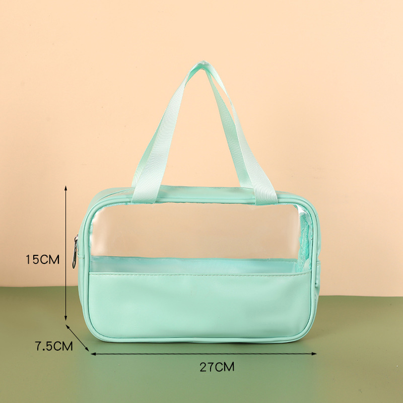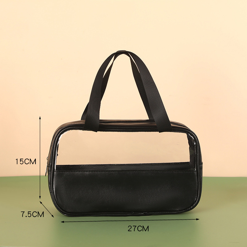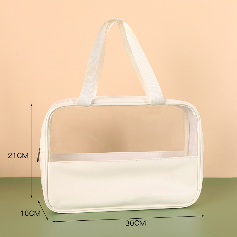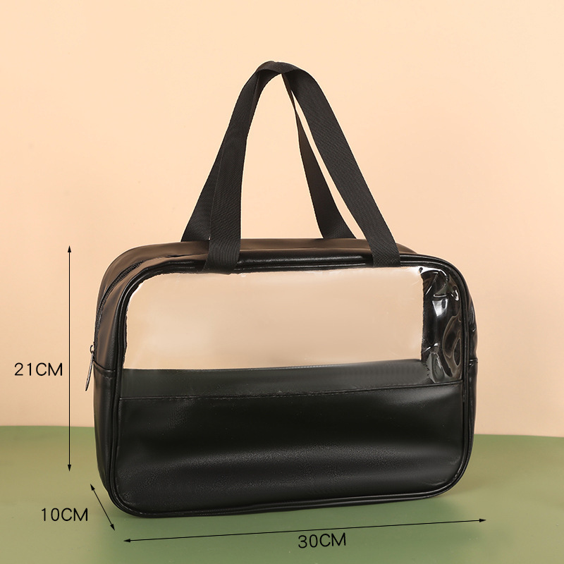 新款PU透明防水洗漱包大容量便捷手提包洗浴收纳袋 PVC拼接化妆包