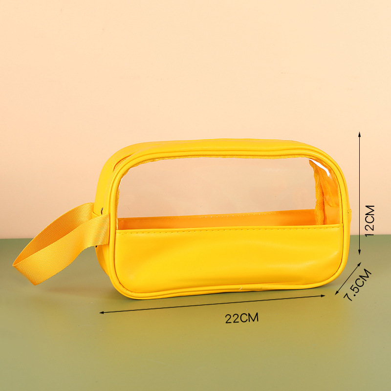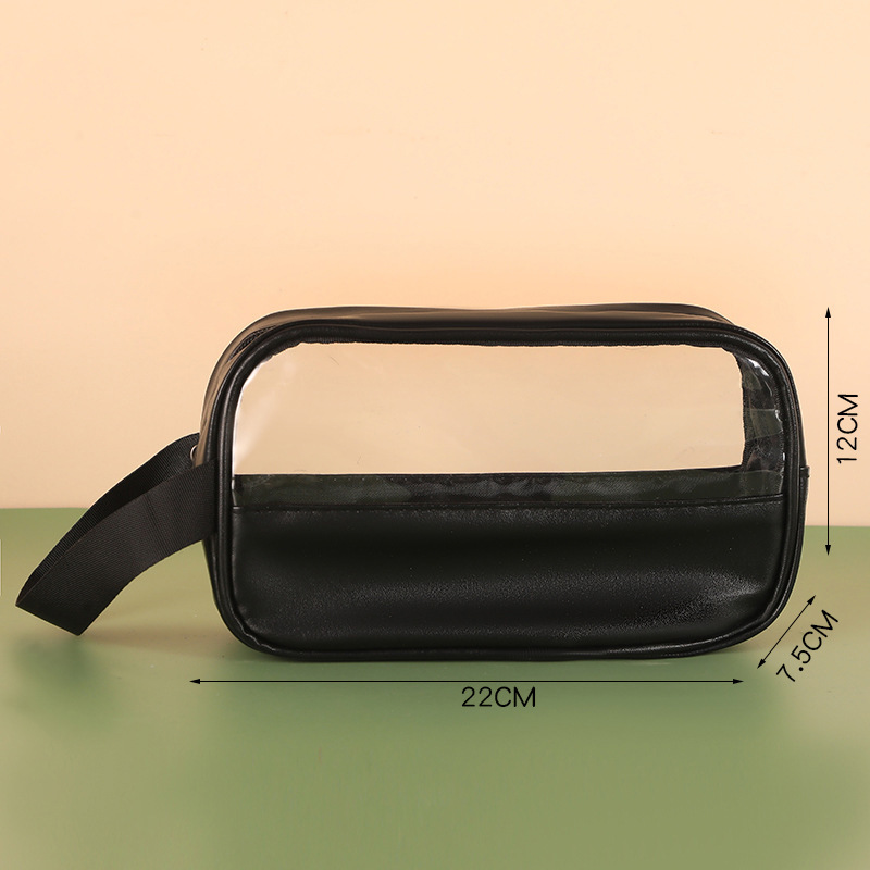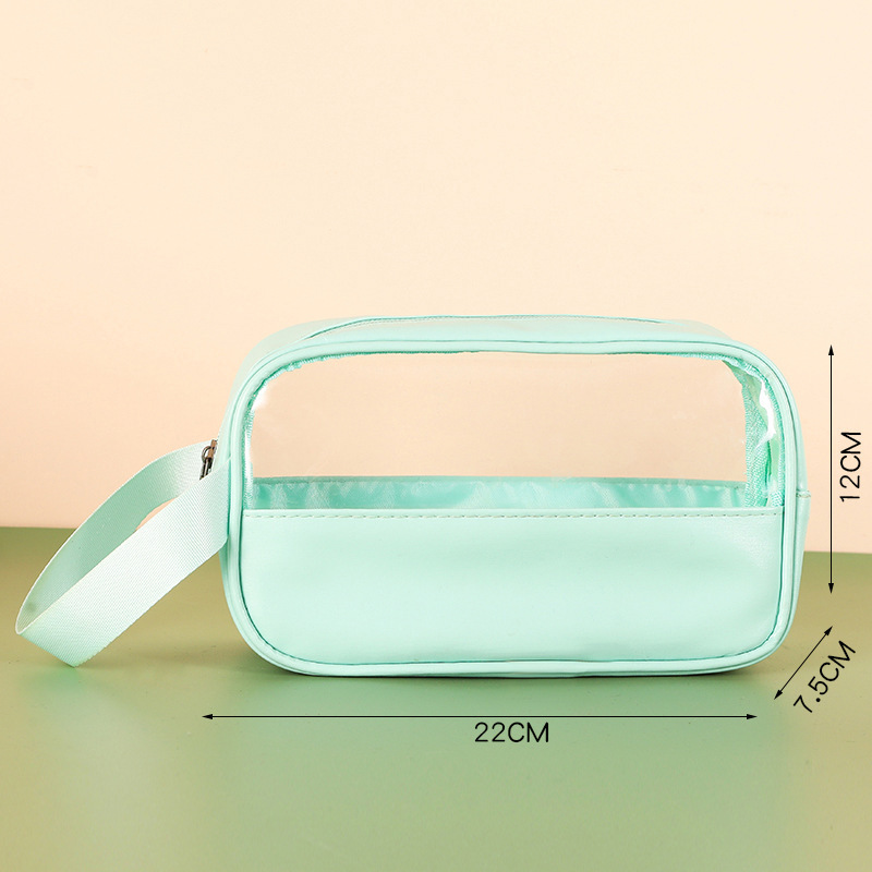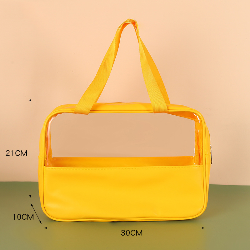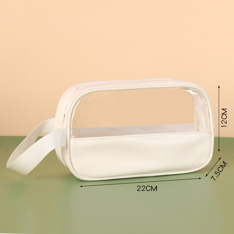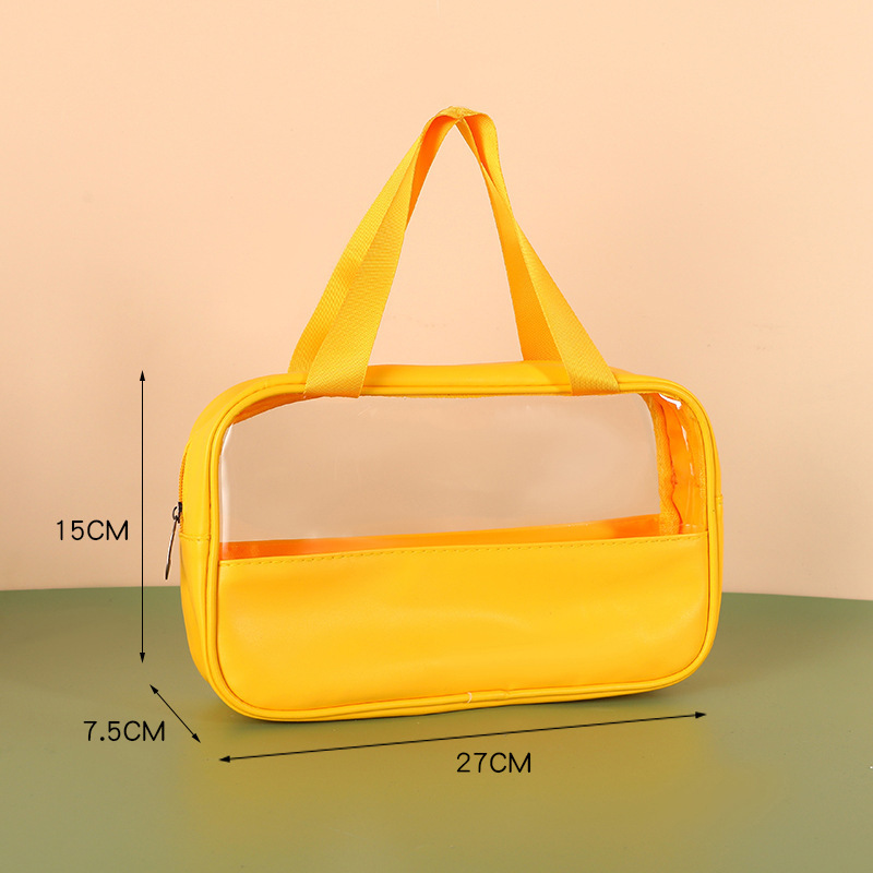 新款PU透明防水洗漱包大容量便捷手提包洗浴收纳袋 PVC拼接化妆包