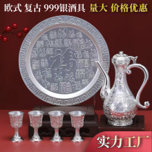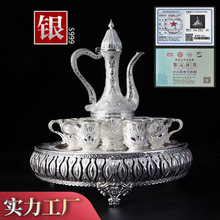 百福茶具套装商务创意礼品批发999足银茶壶银盘日用银茶杯子6件套