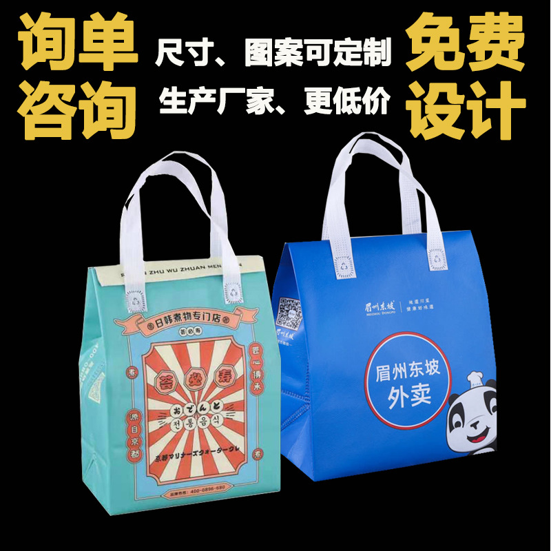 现货无纺布打包袋保温外卖手提袋奶茶烧烤无纺布外卖打包袋