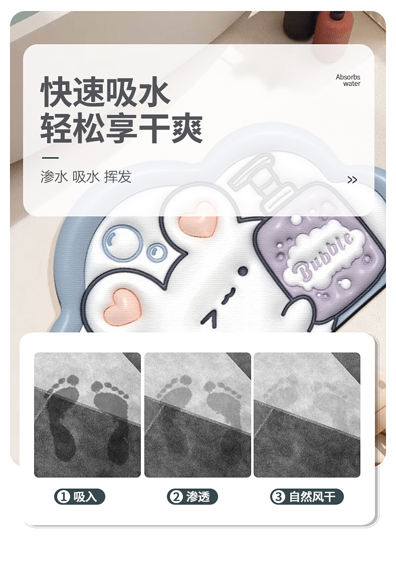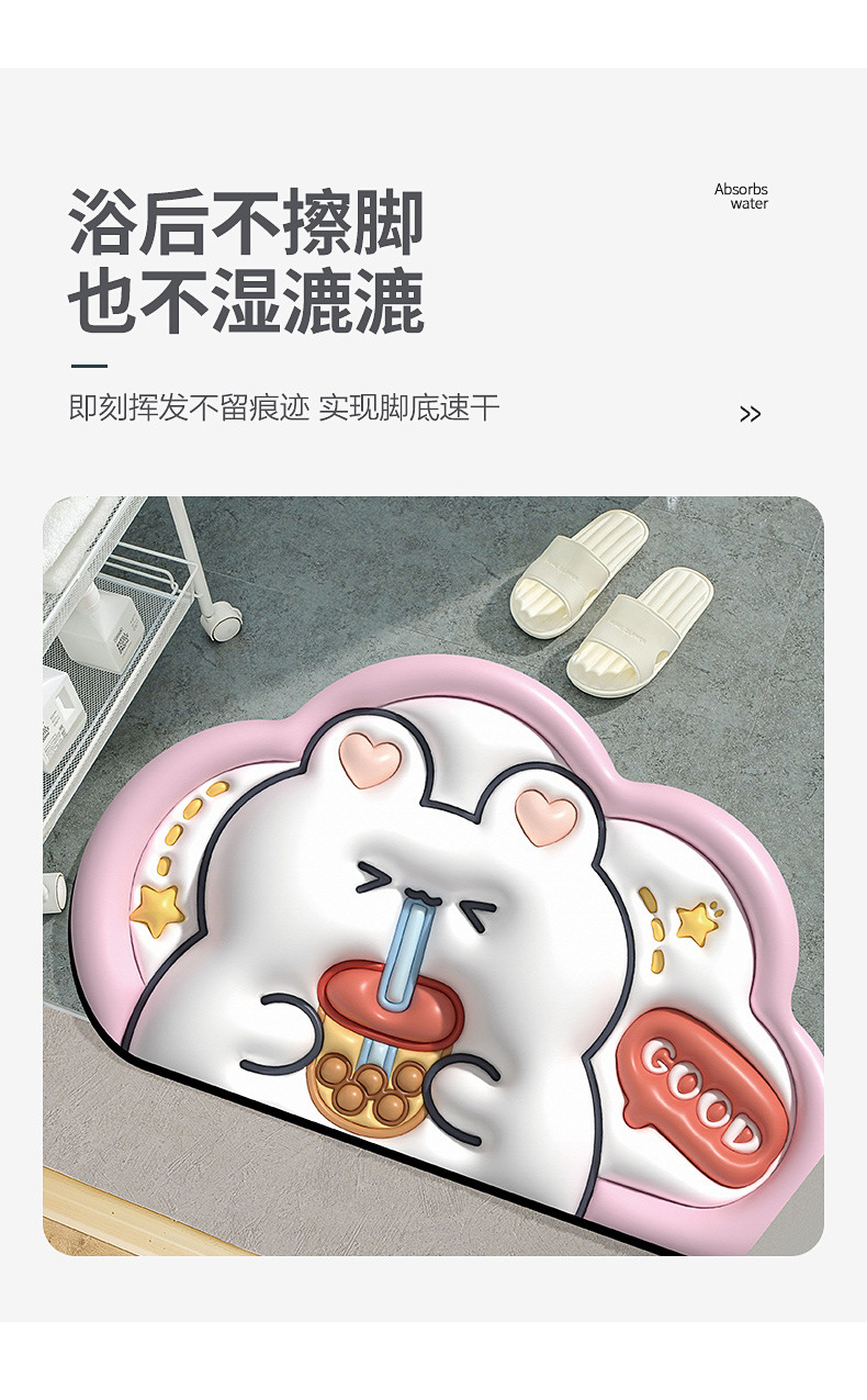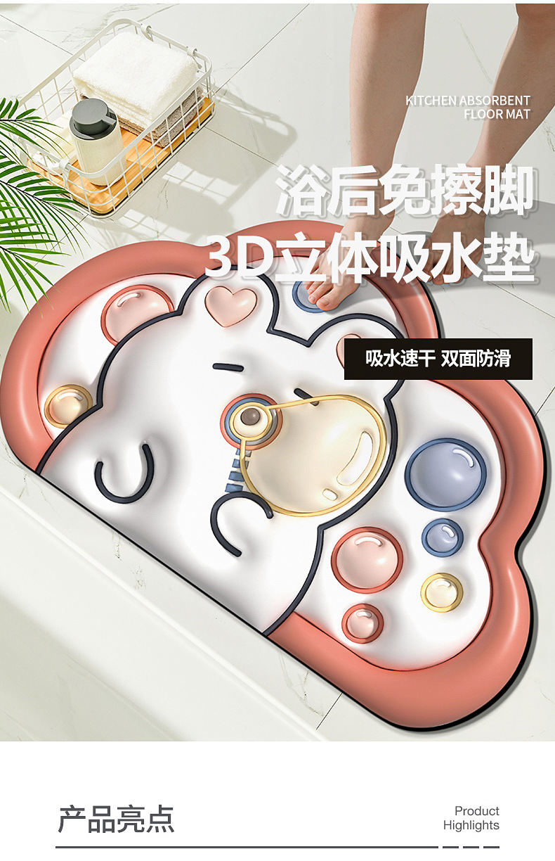 3D立体云朵地垫卫生间浴室门口防滑脚垫门垫进门硅藻泥速干吸水垫