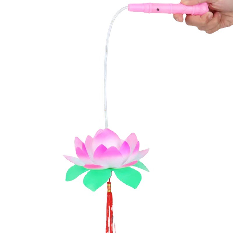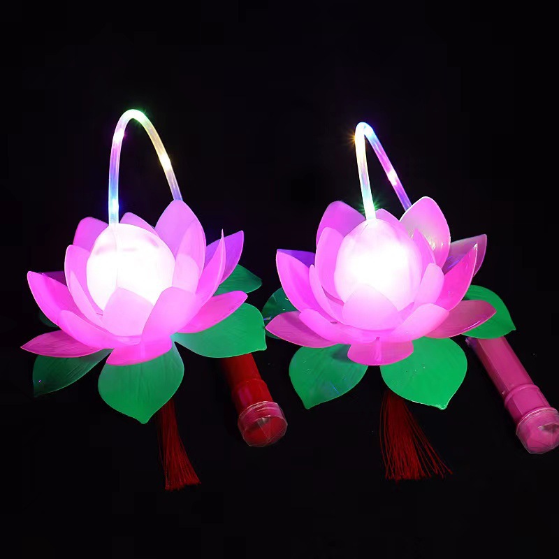 中秋节荷花灯笼电动发光儿童手提莲花玩具元宵节闪光灯笼地摊货源