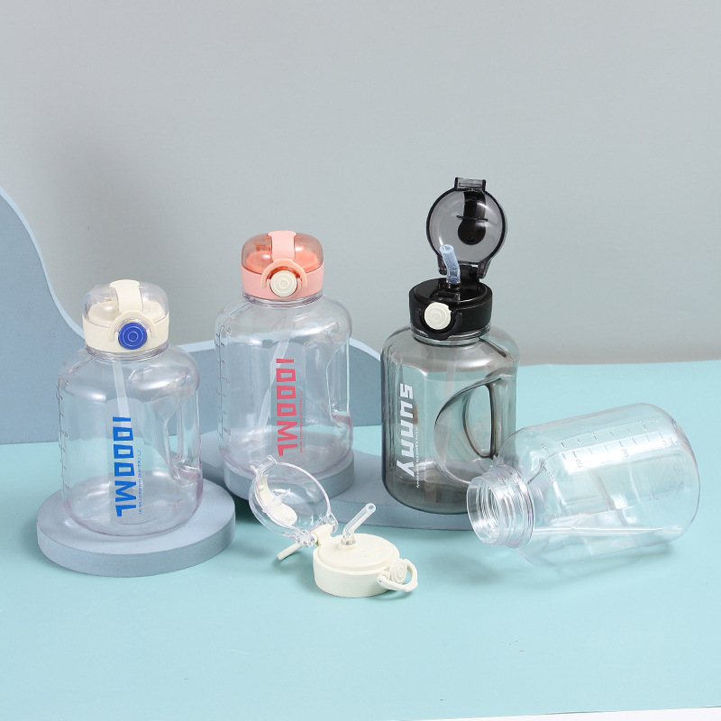 塑料大容量水杯女男运动水壶健身太空杯刻度吸管便携手柄顿吨桶吨