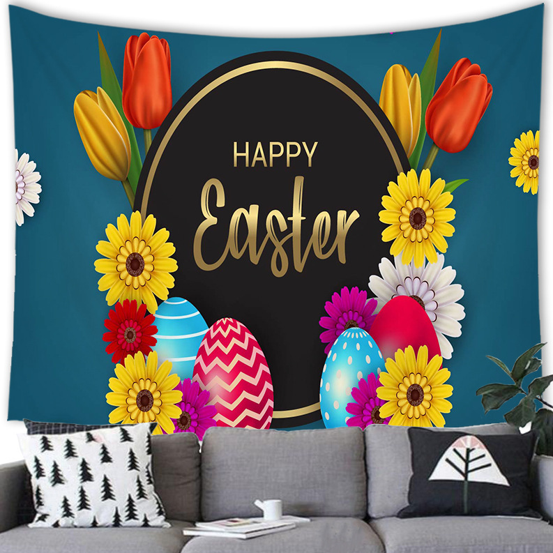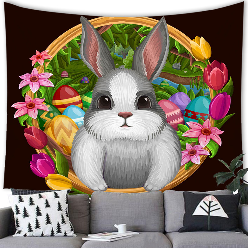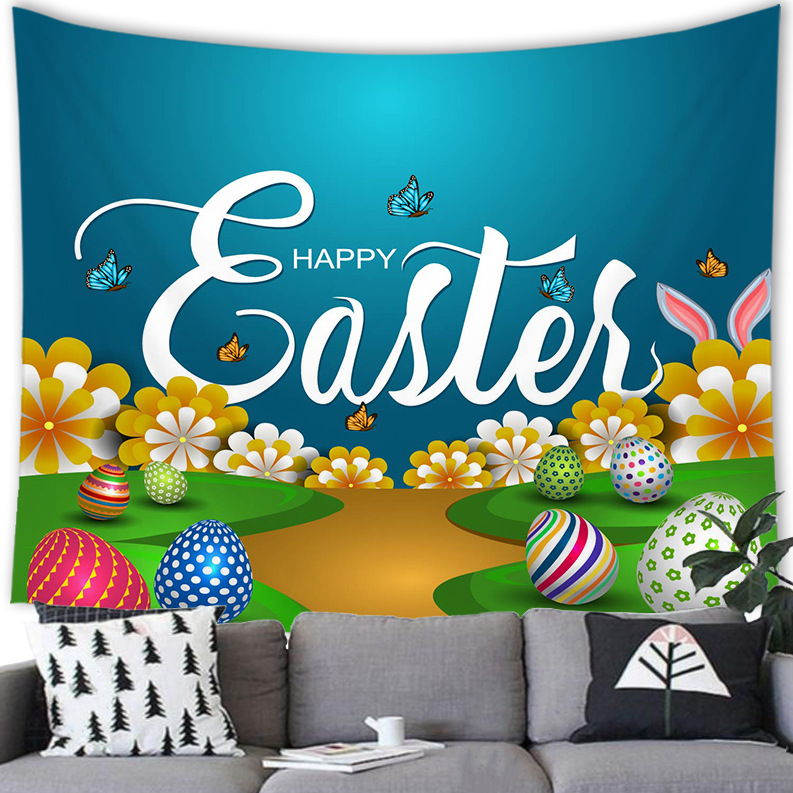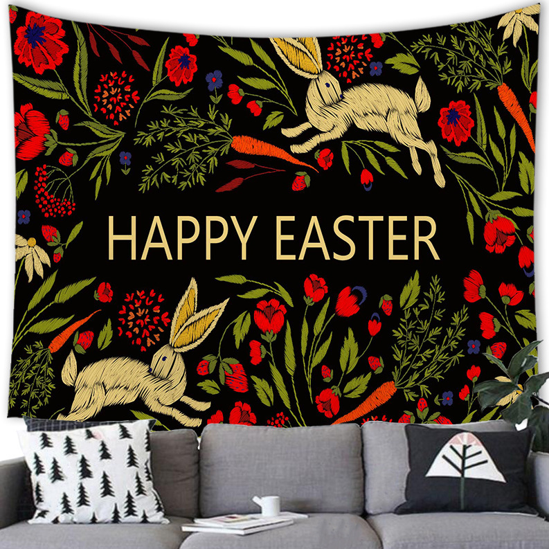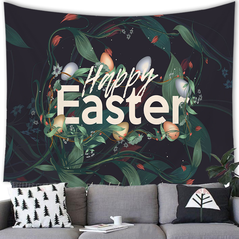跨境复活节氛围布置背景布彩蛋兔子涤纶挂毯数码印花不易褪色壁毯