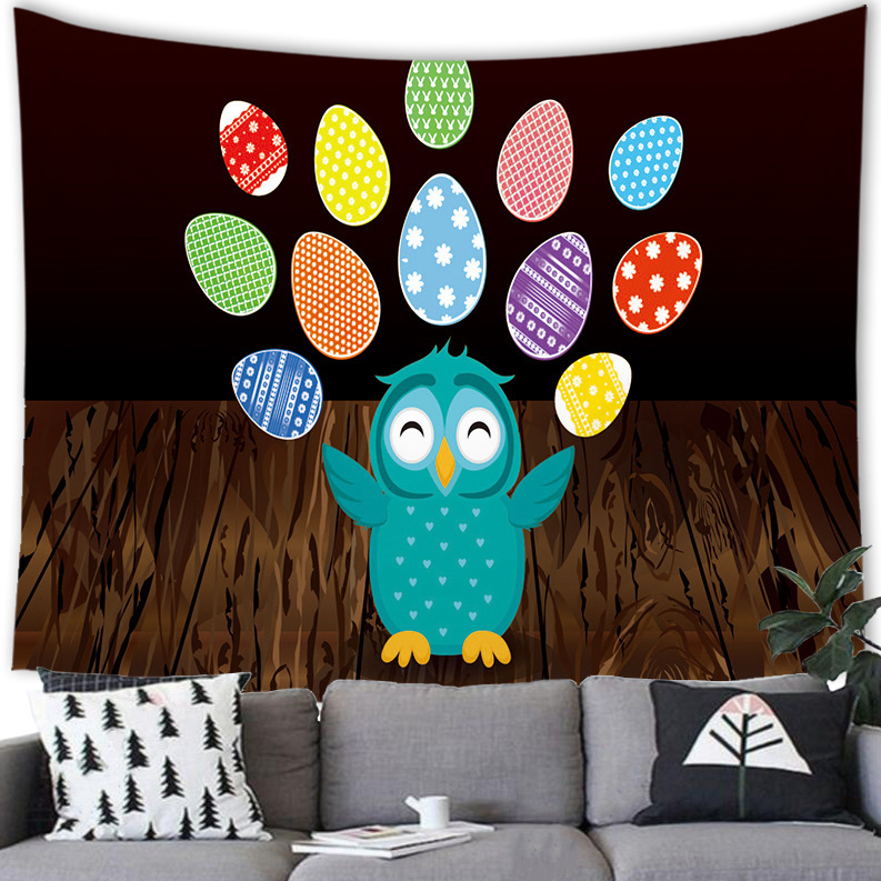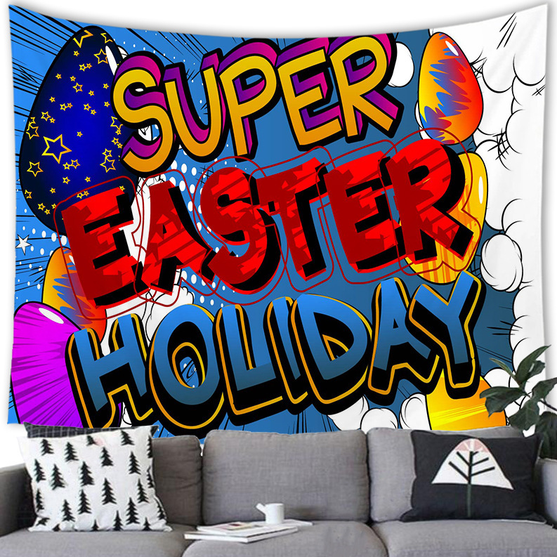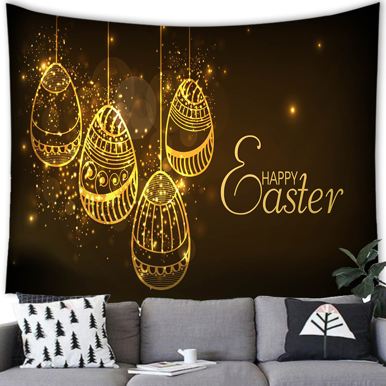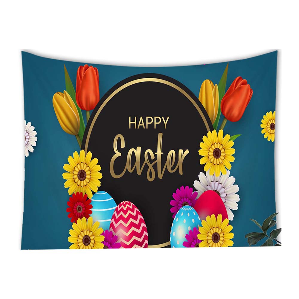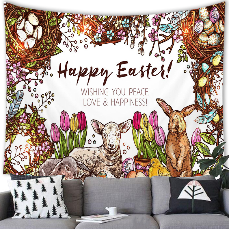 跨境复活节氛围布置背景布彩蛋兔子涤纶挂毯数码印花不易褪色壁毯