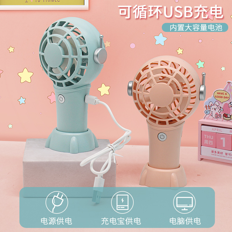 亚马逊外贸宿舍桌面手持风扇带手机支架便携随身口袋迷你风扇礼品