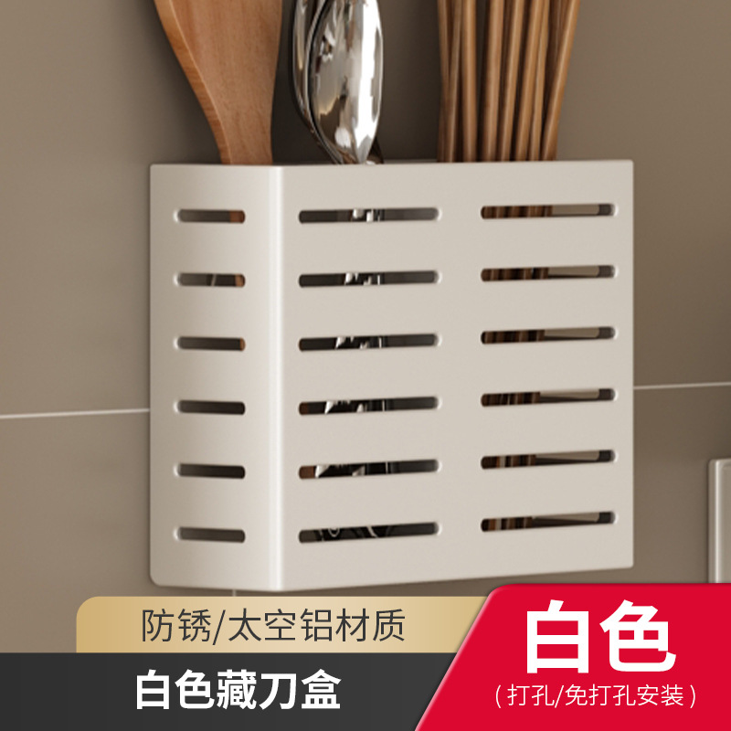 厨房置物架批发免打孔太空铝壁挂式调料架筷子筒刀架白色厨房收纳
