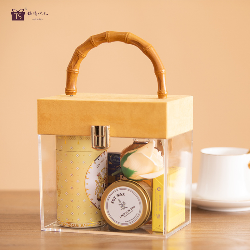 丝绒竹节伴手礼盒空盒子伴娘透明亚克力喜糖盒礼品礼物包装盒批发