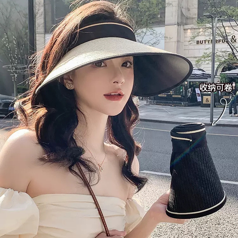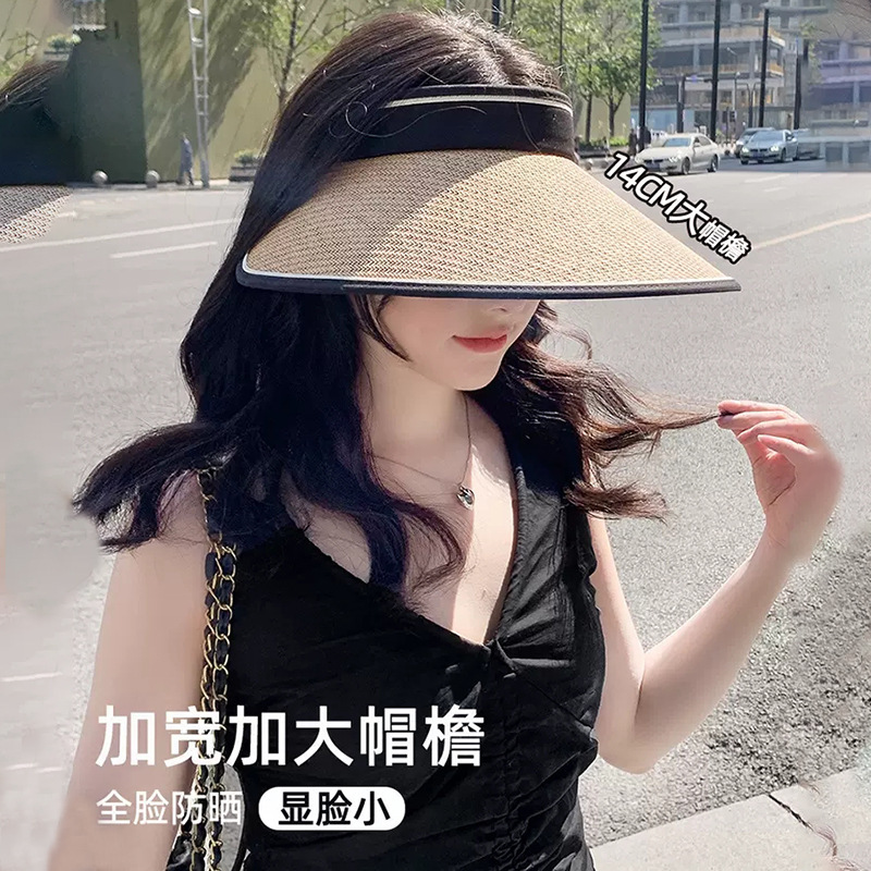 UPF50+大帽檐夏季骑车防紫外线空顶防晒帽女uv太阳帽子遮脸遮阳帽