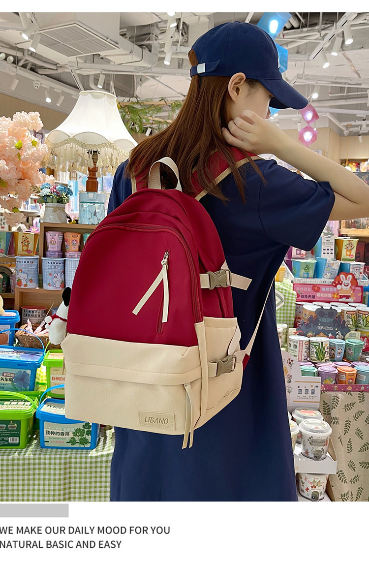 学院风双肩包小众撞色设计情侣背包学生校园书包