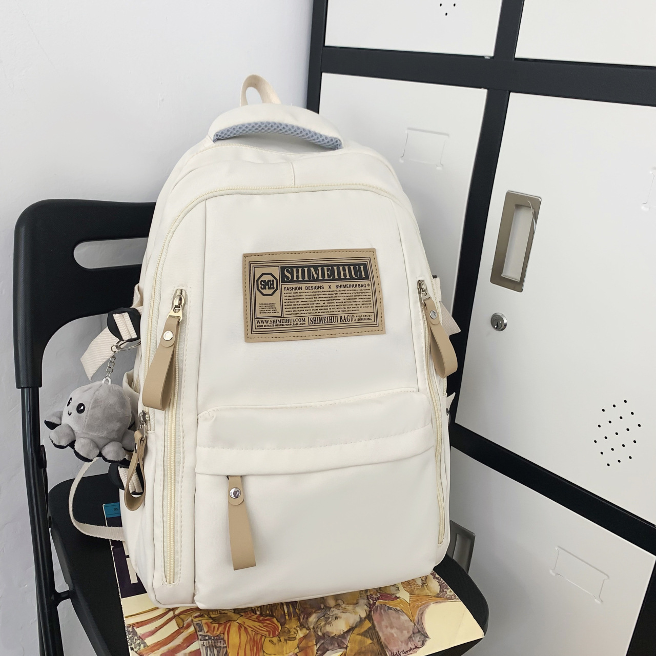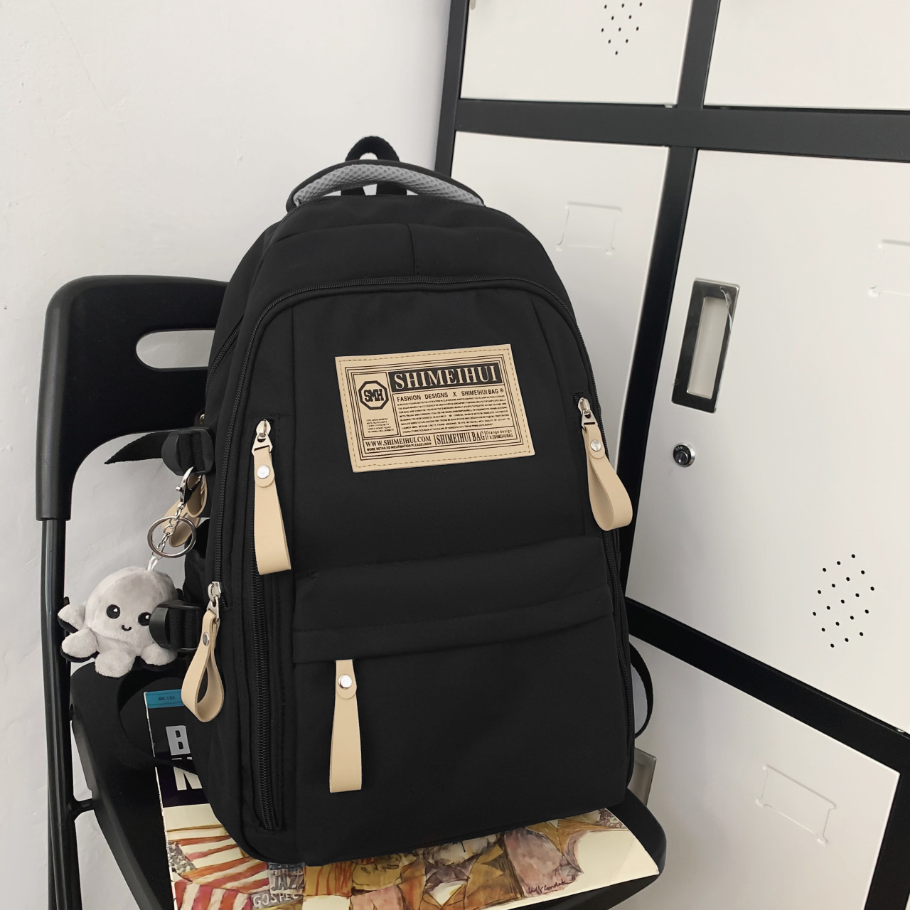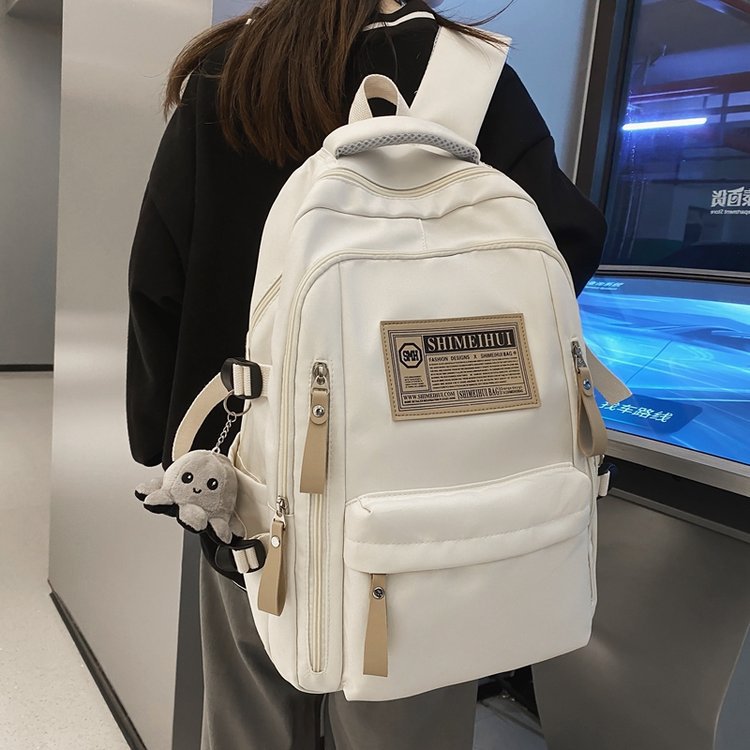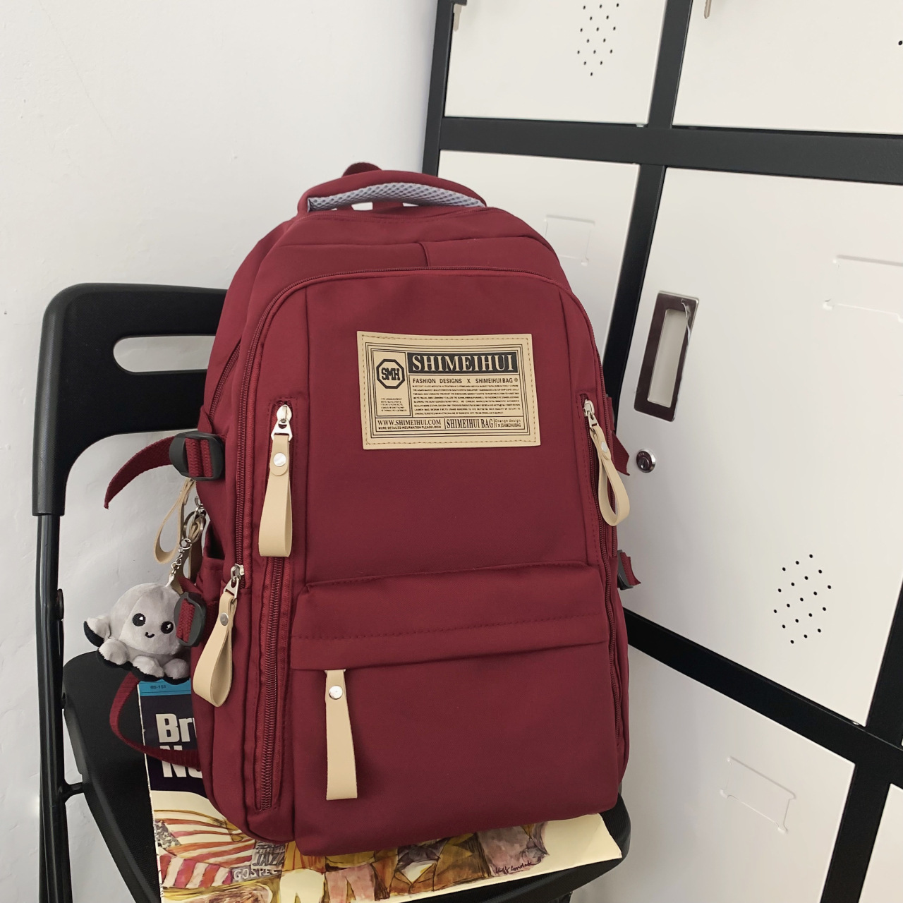 2023新款防水中学生纯色双肩包女高中生牛津布背包