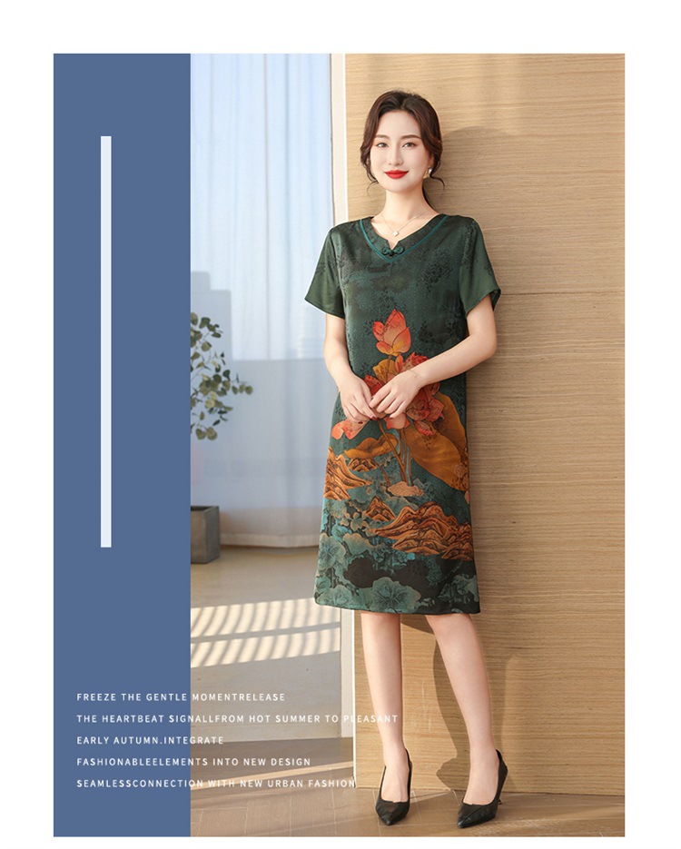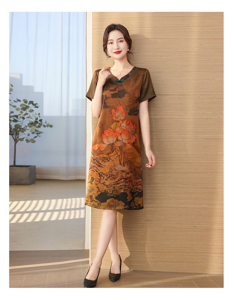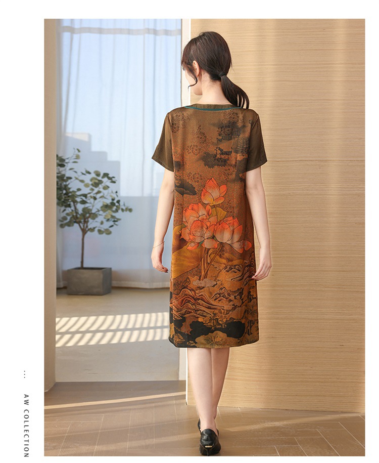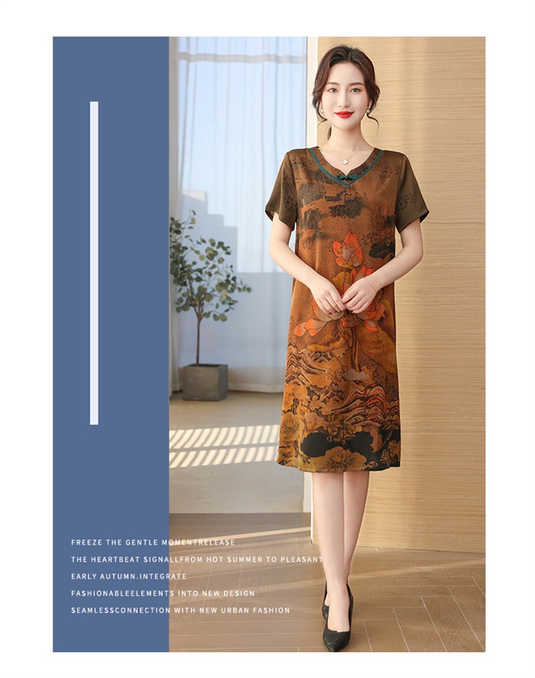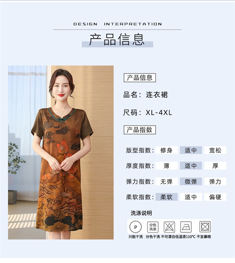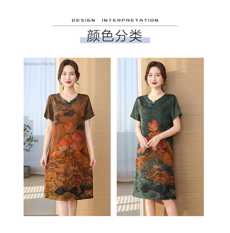 中老年女夏装真丝裙2023夏新款妈妈连衣裙桑蚕丝中长款提花过膝裙