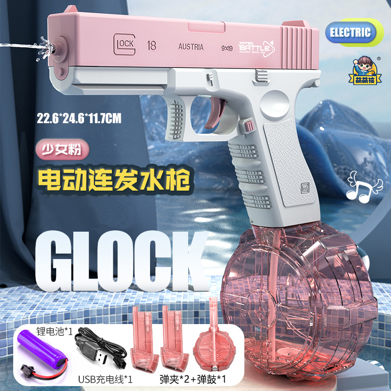 格洛克水枪儿童夏天户外呲戏水喷水枪大容量高压连发电动水枪玩具