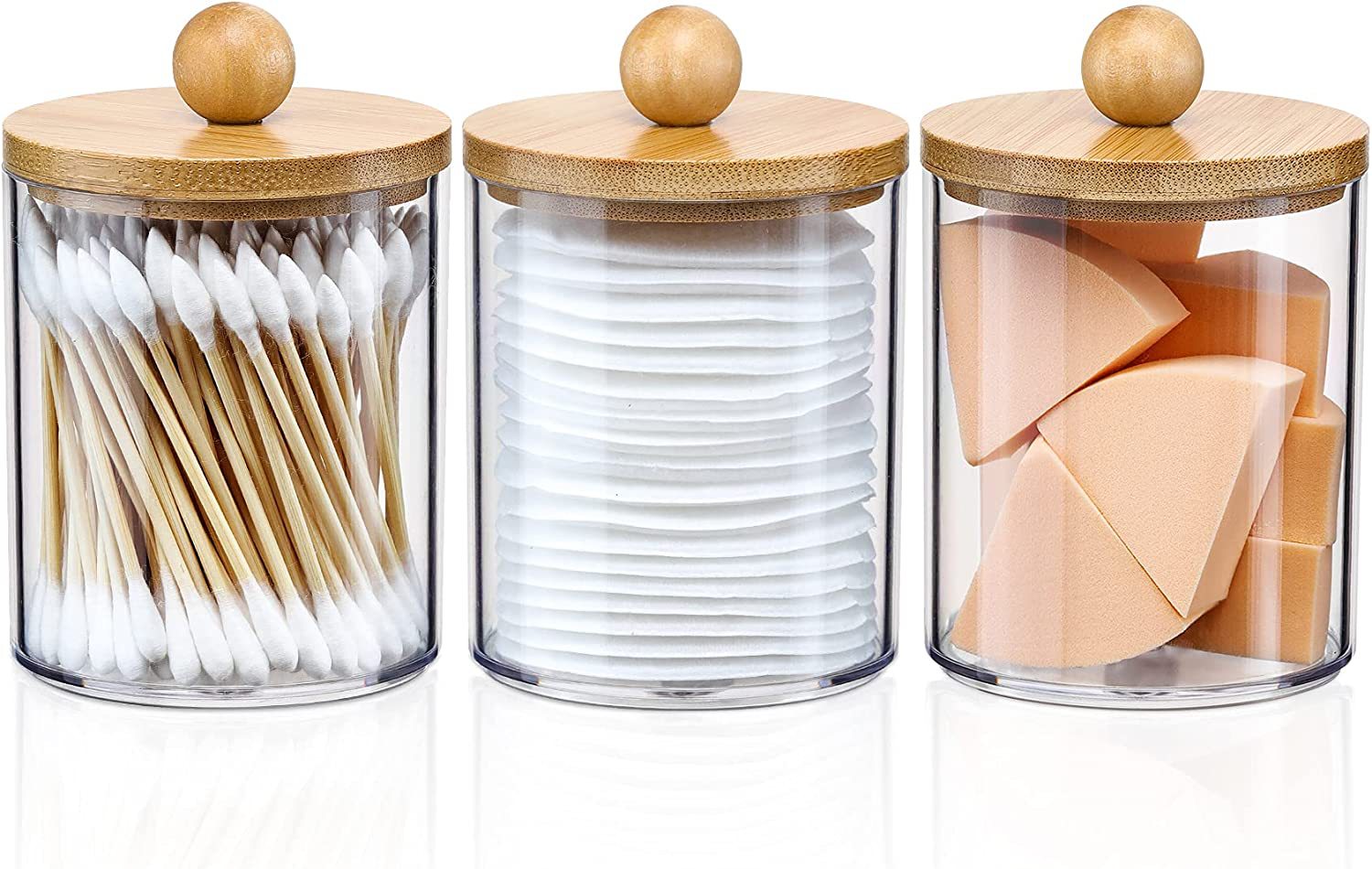 棉签收纳盒亚克力便携式圆形容器化妆棉粉扑收纳盒棉签卸妆棉盒