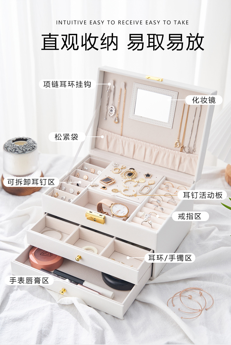 大容量饰品收纳盒儿童发夹发饰收纳盒项链戒指耳环防氧化首饰盒