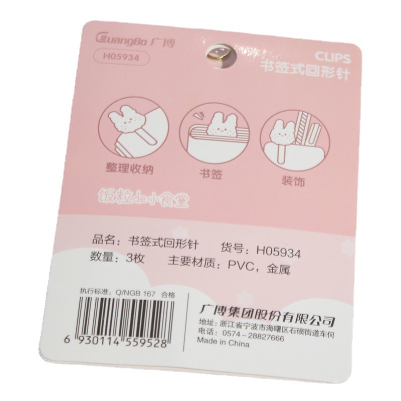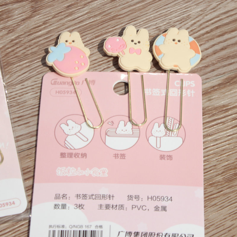 4金属书签式回形针 3枚装卡通饭粒小食堂学习